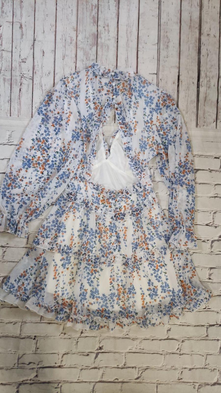 Krásne letné šaty zo šifónového materiálu. sú podšité, s holým chrbtom. Dĺžka 88cm, šírka v páse 35 cm