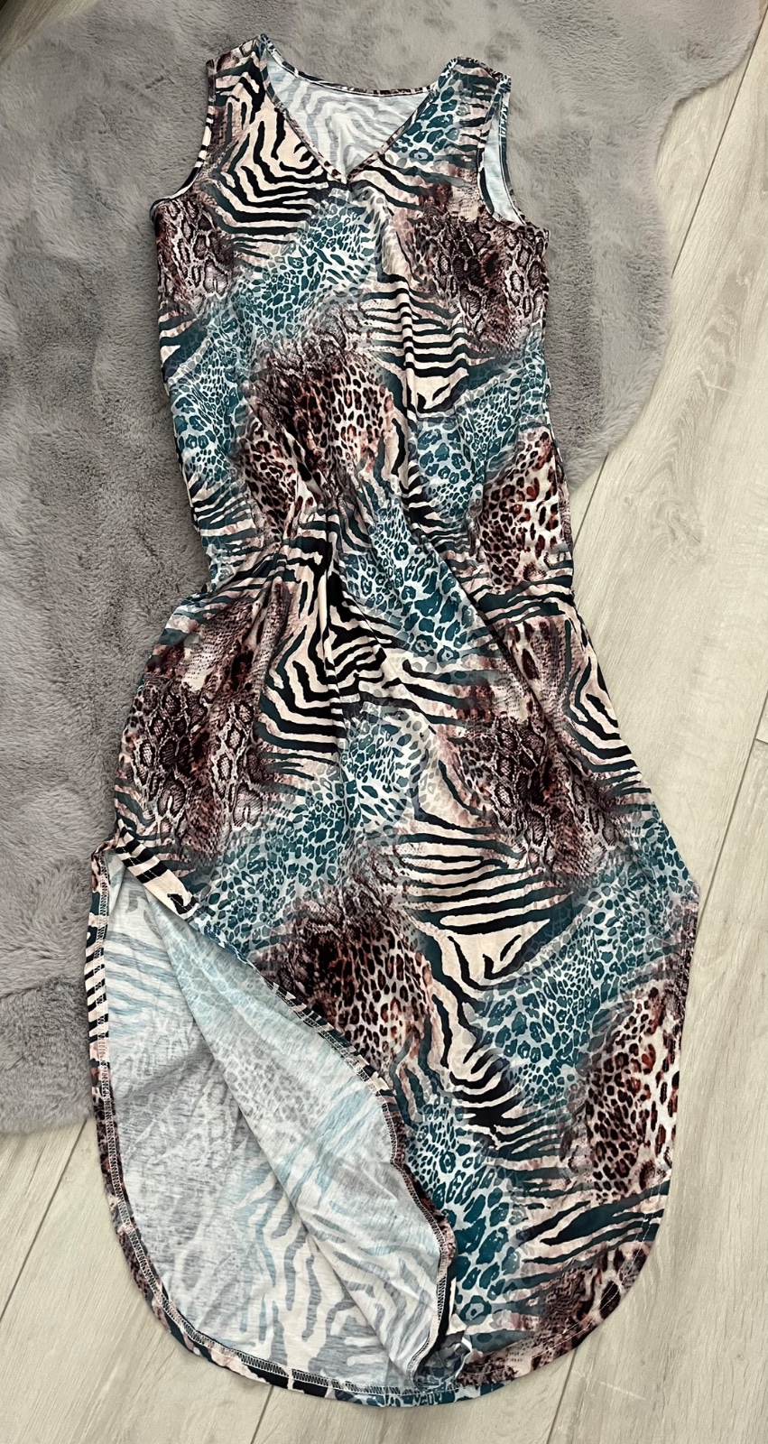 Krasne, príjemný materiál, elastický, písaná veľkosť M, ale skor L, mne veľké, 100%stav, s rozparokom a vreckami , ideálne na napr.na dovolenku , Shein,
