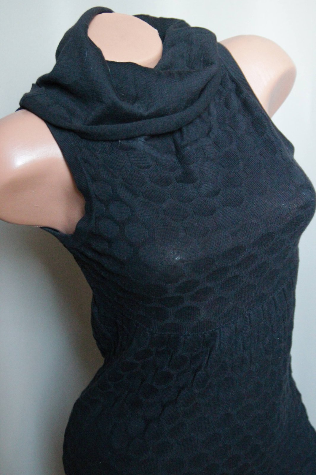 Čierne pletené šaty s výrazným golierom. Veľkosť XS. Materiál je príjemný a elastický.