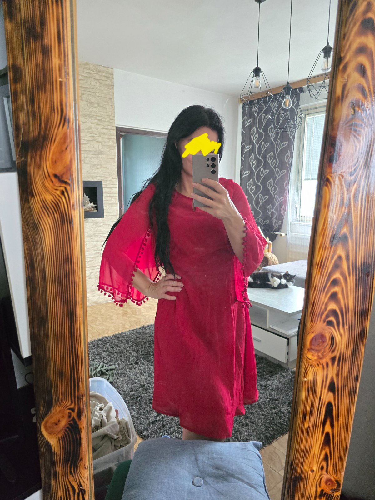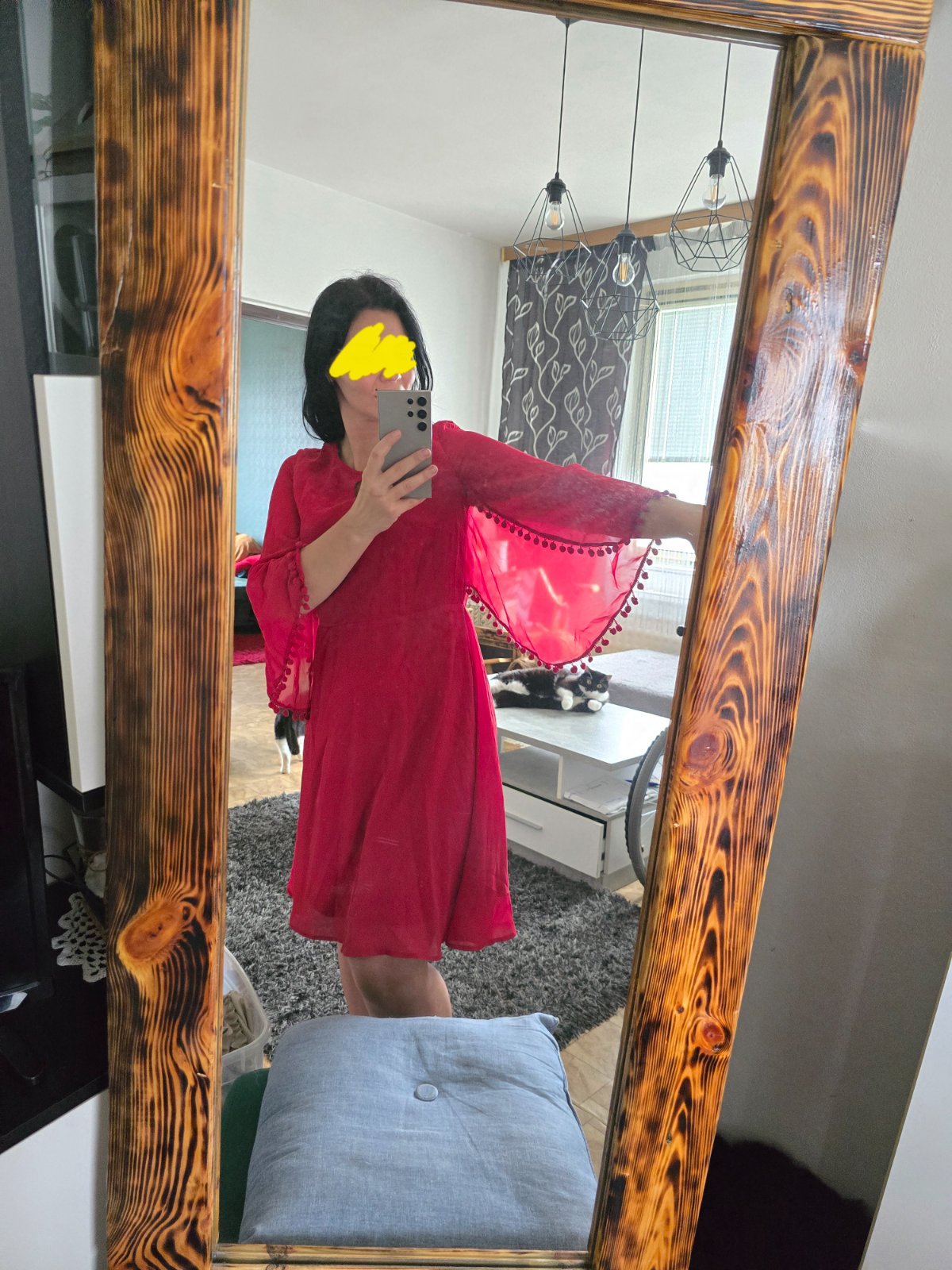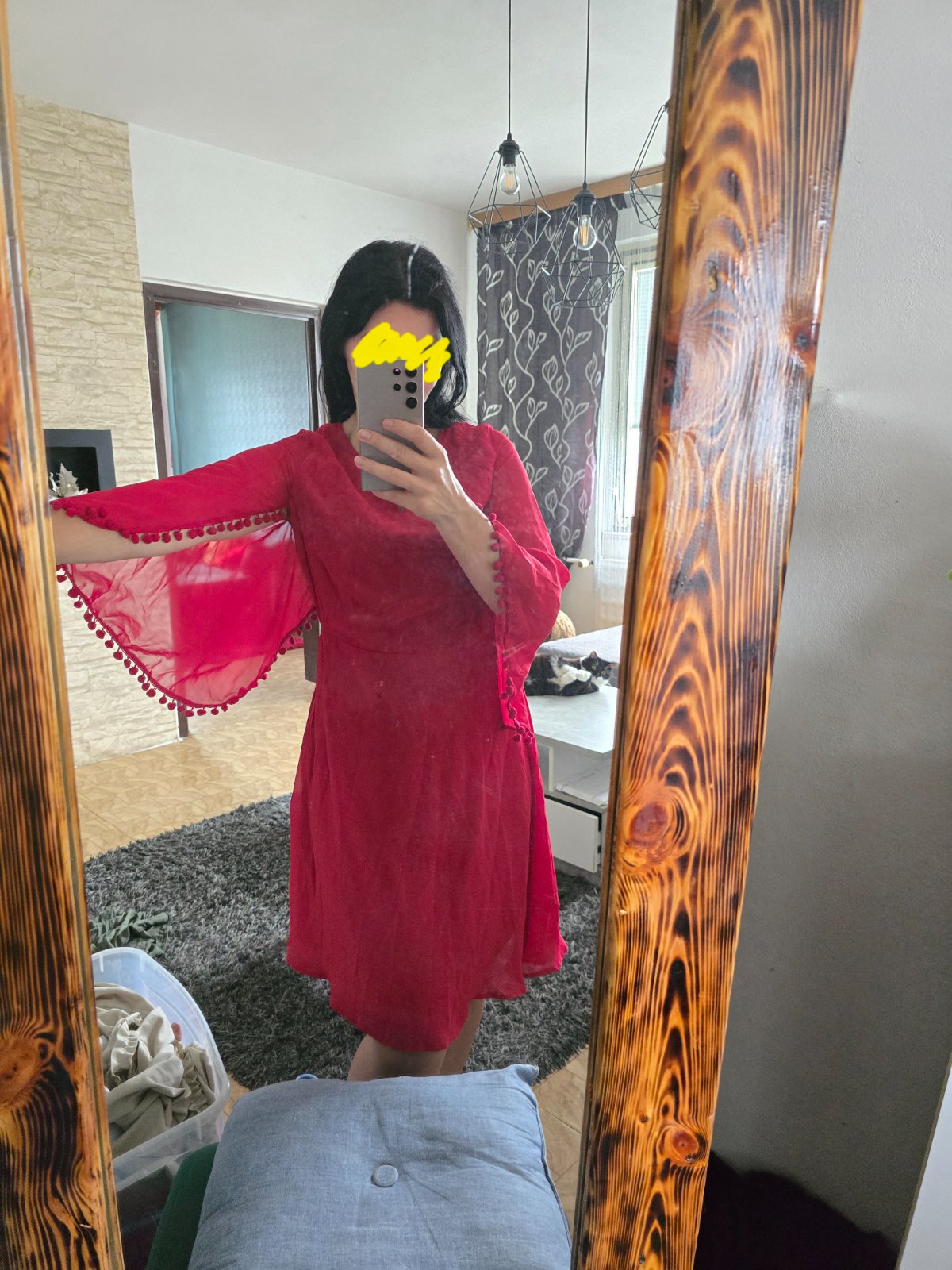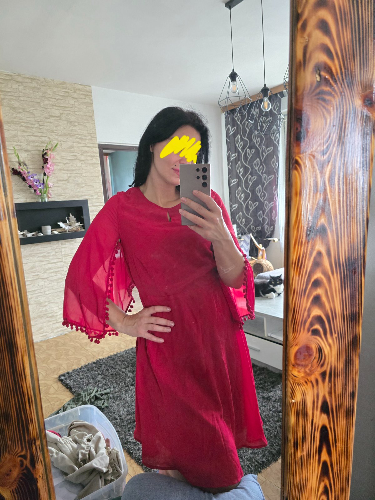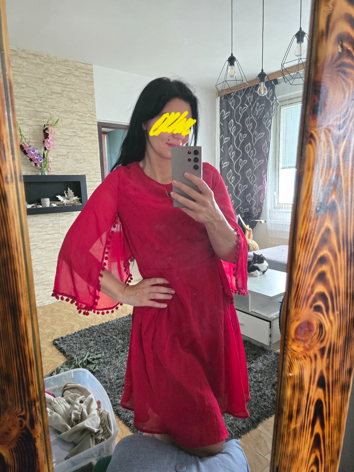 bordové šaty so zaujímavými rukávmi s guličkami, rozmery na fotkách, latka je pevná , farba skor ako na druhej fotke su bordove nie červené, značka bodyflirt