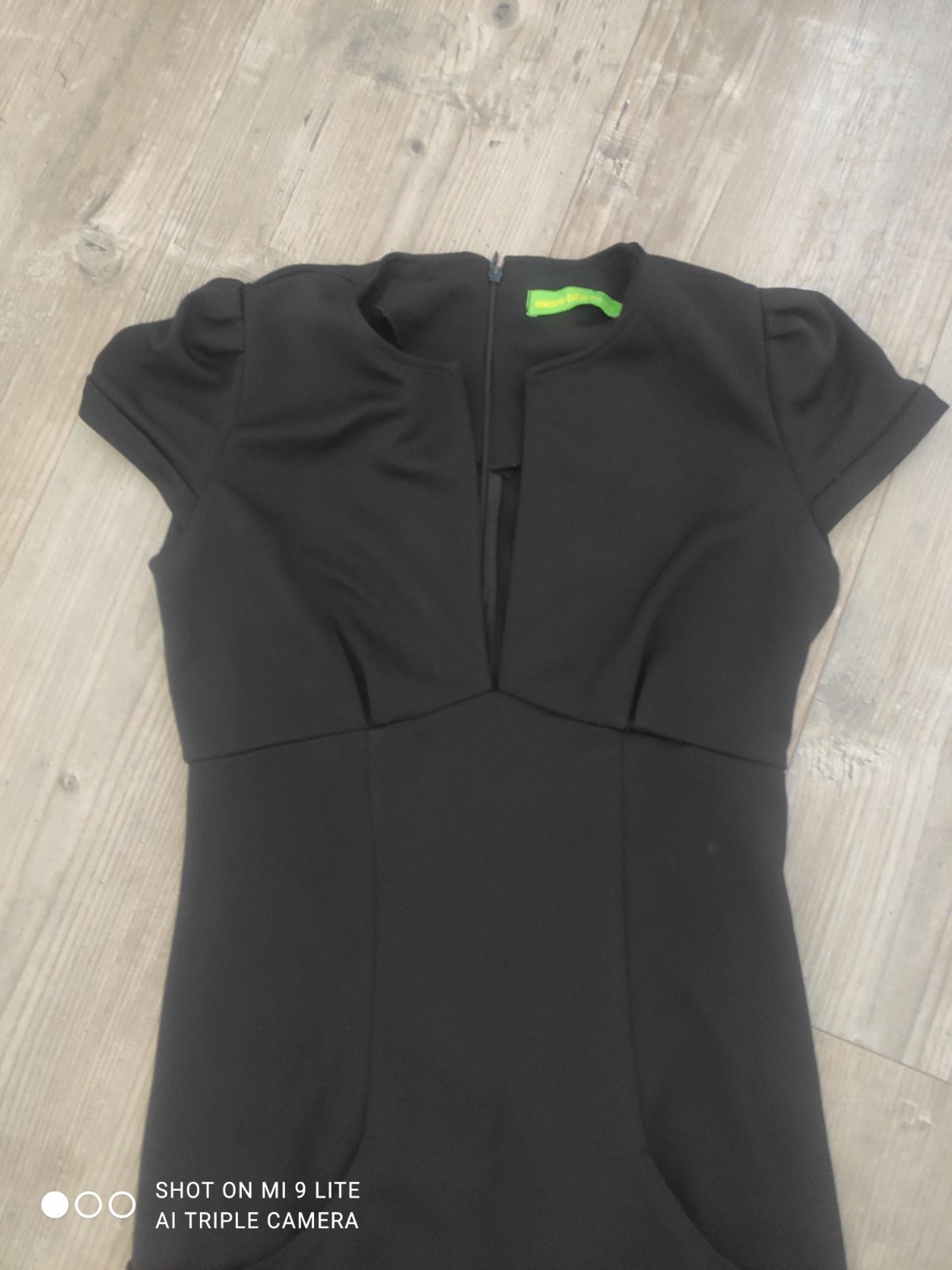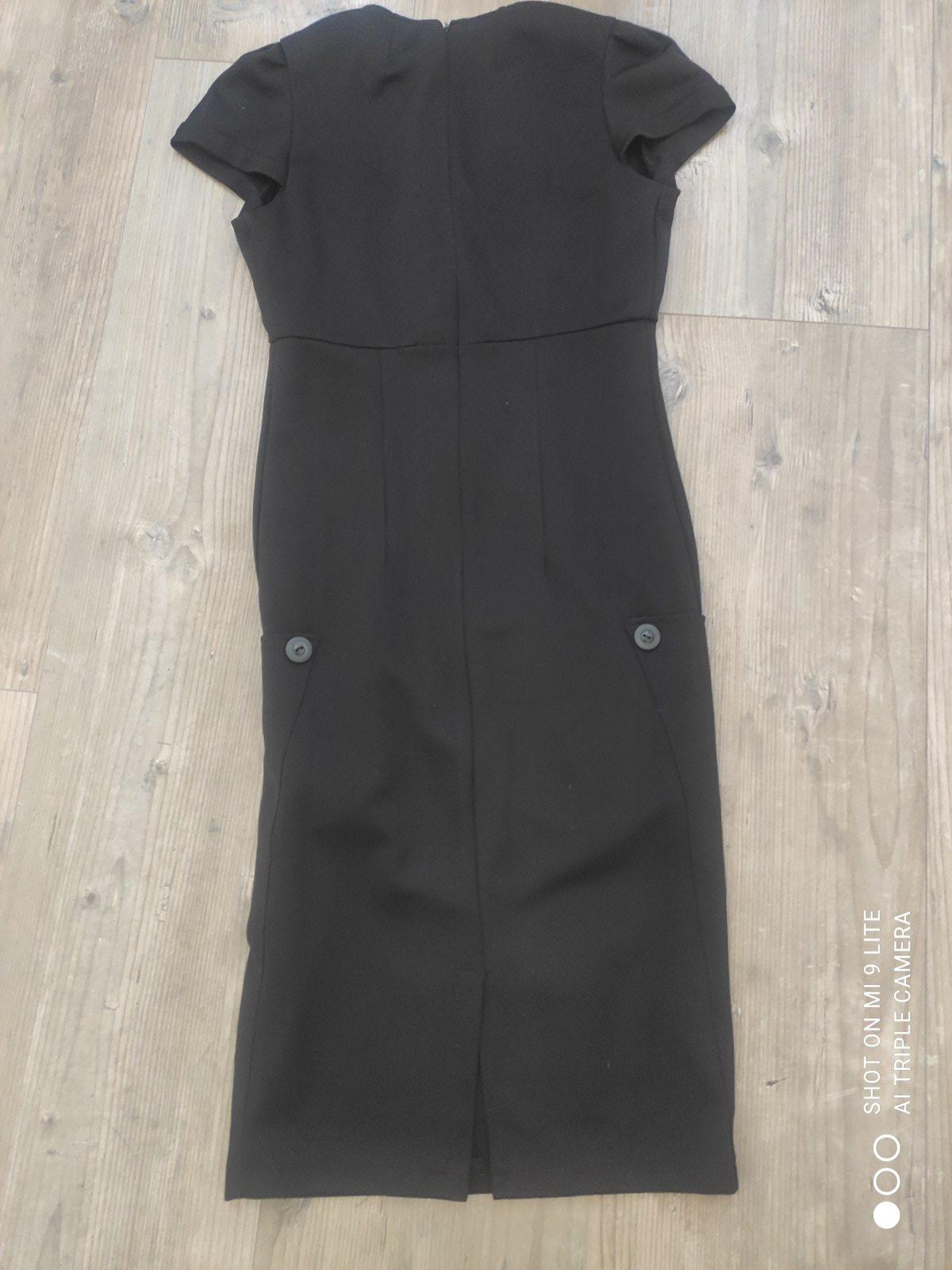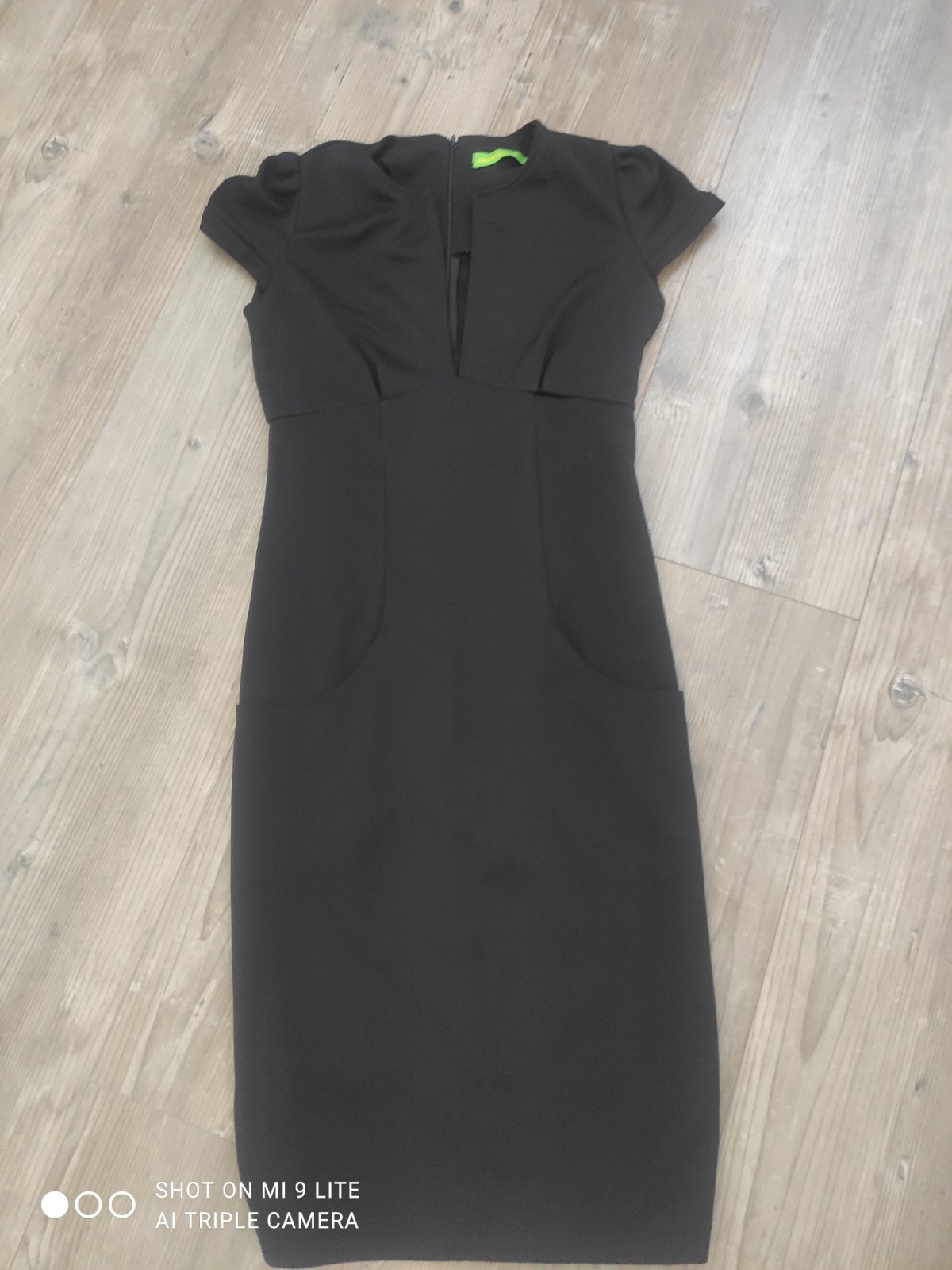 perfektne elegantne saty s hlbokym vystrihom a vreckami . saty su v midi dlzke. sedia uzasne. oblecene boli na 2 akciach . jeden svik je mierne povoleny, nie rozparany, staci mierne presit.
