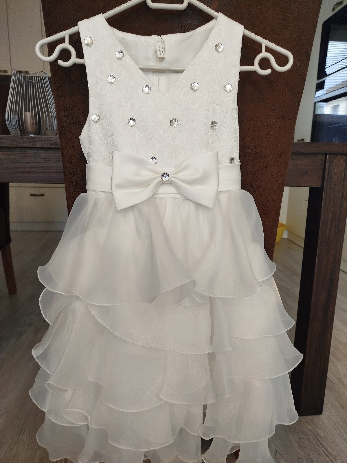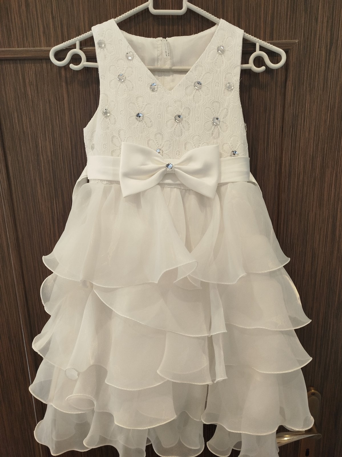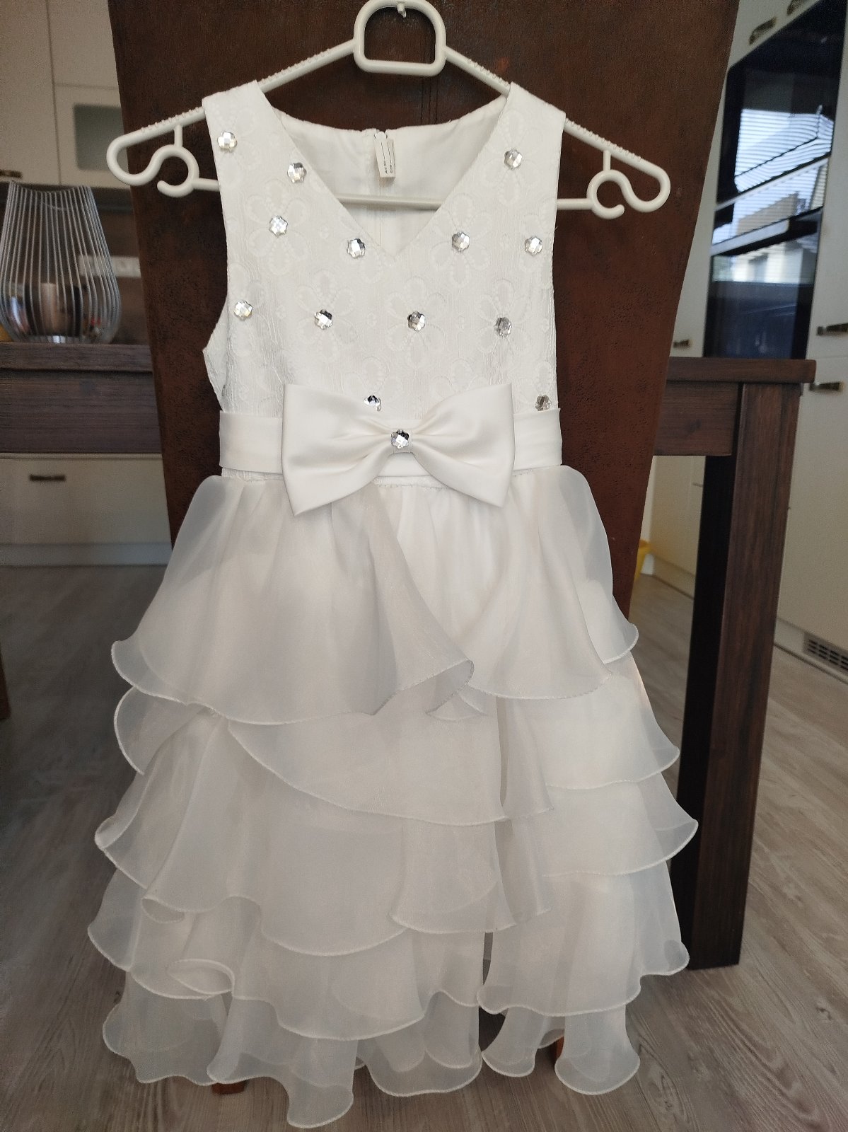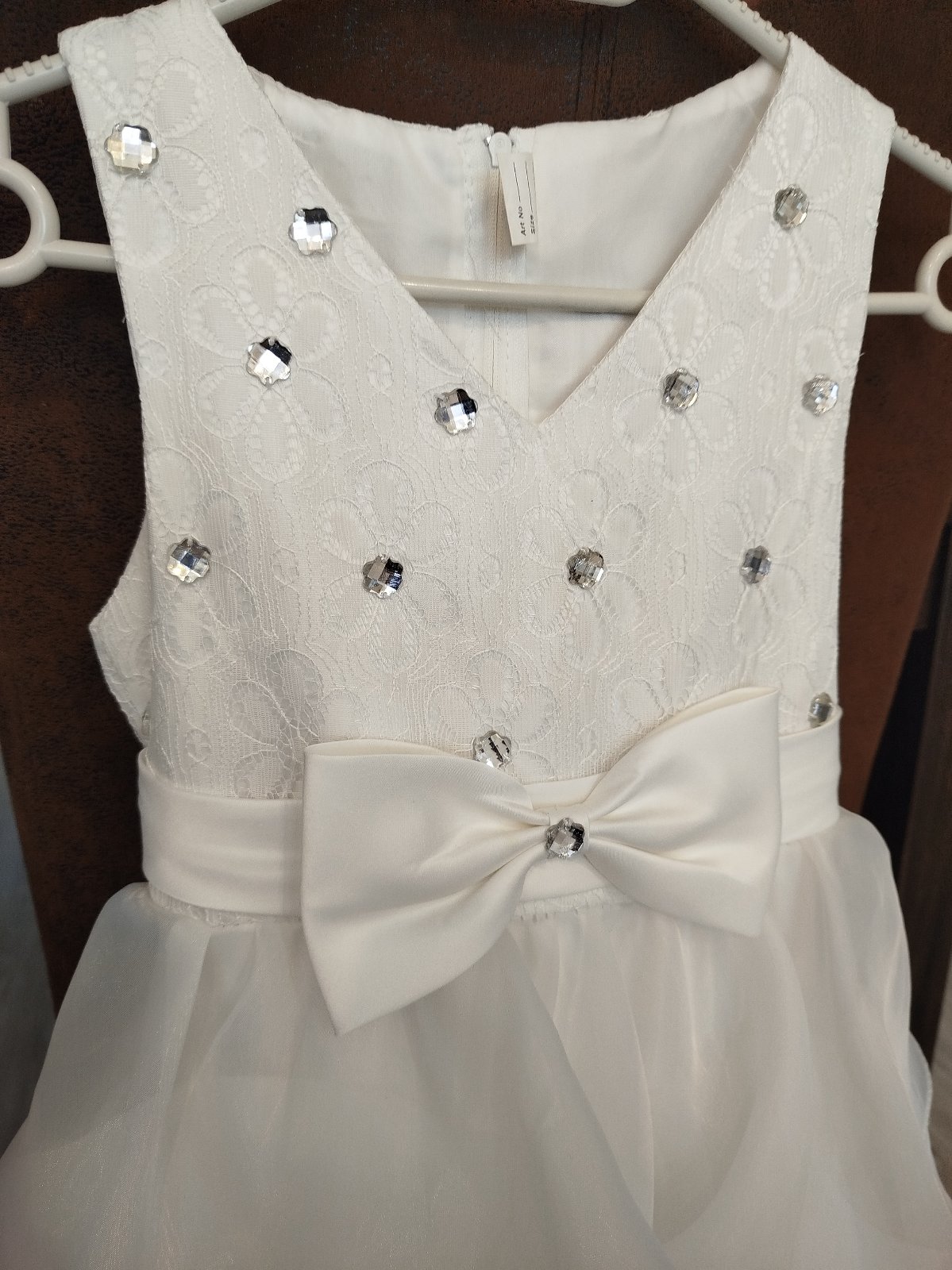 Veľkosť písaná 140. Na chrbátiku zips na zapínanie. Na dekor vzadu biela, saténová mašľa.