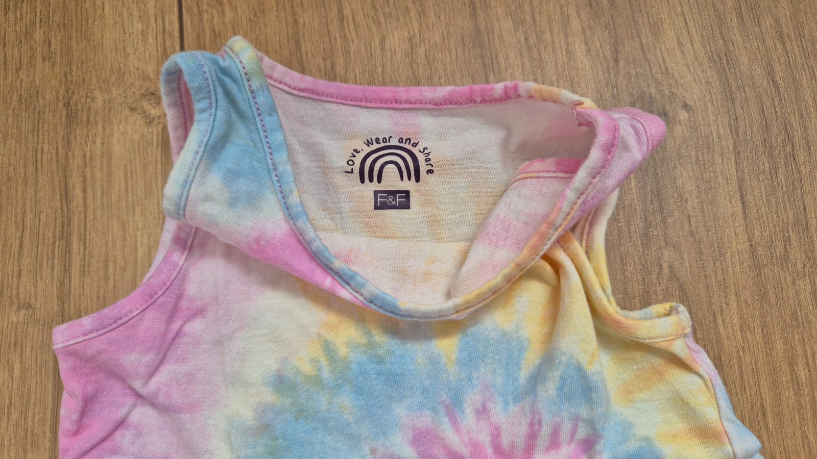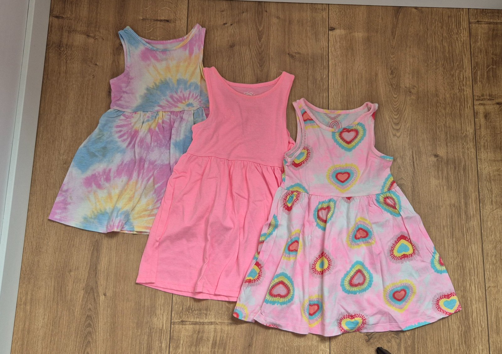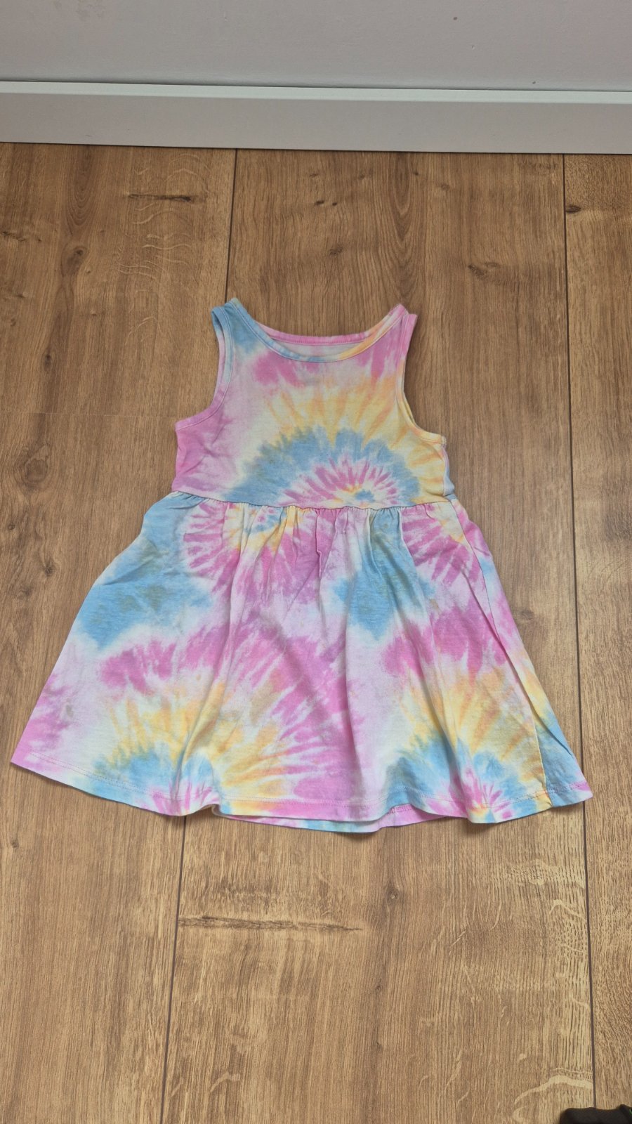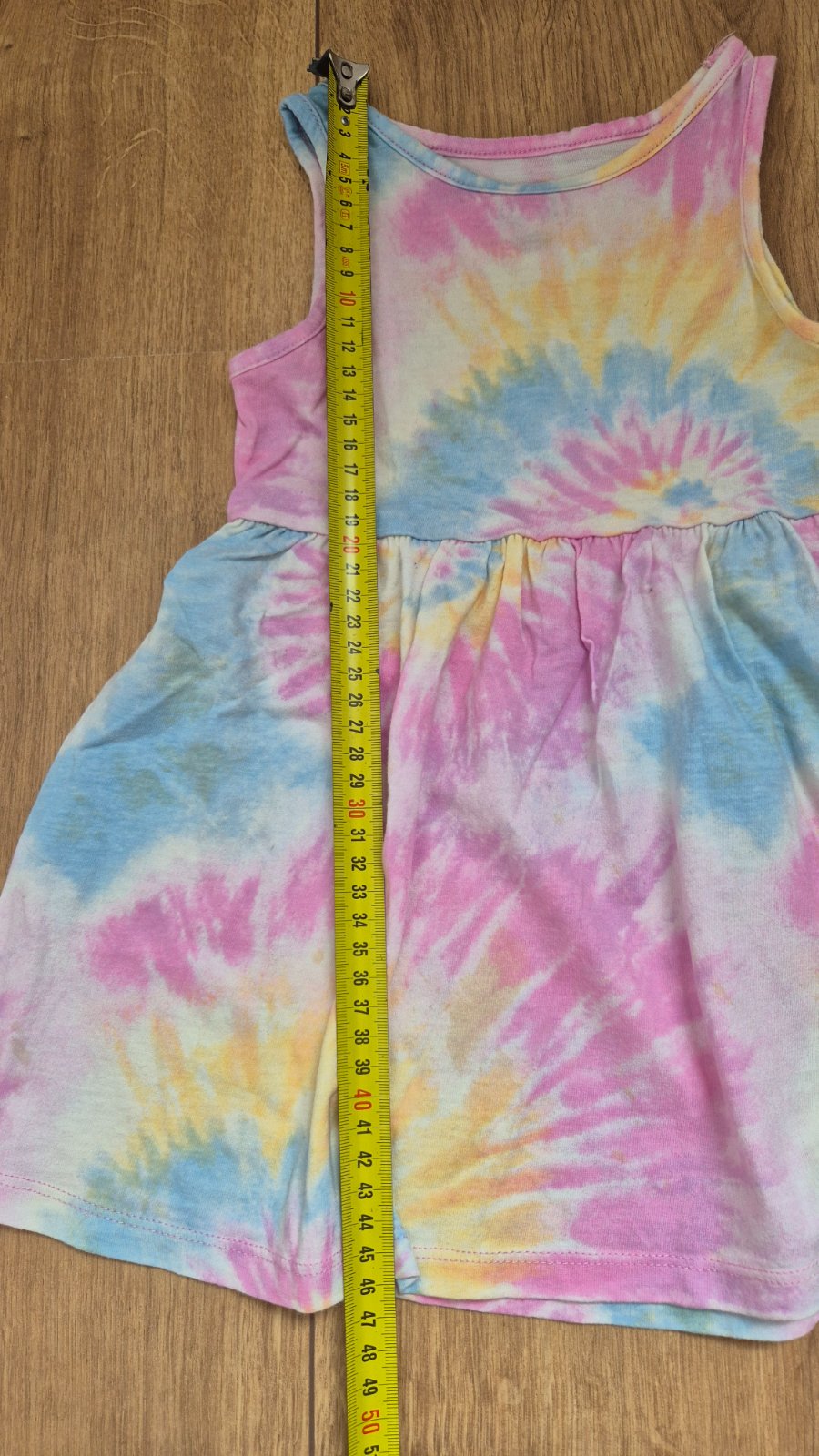 Velkost pisu 104, ale su mensie, ale vid rozmery (nosili sme ich skoro do 4r). Vyborny stav, ako nove. Bavlna. Mam dalsie 2 podobne saty, boli ako sada.