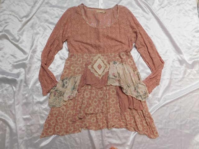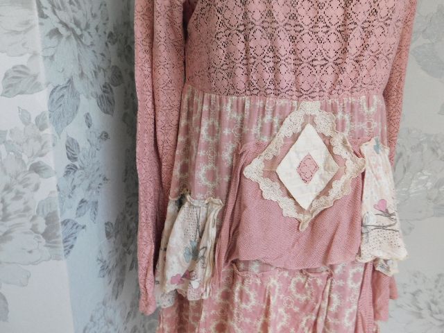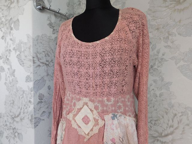 Kvalitne velmi pekne šaty,pudrovej farby s potlačou,kombinovane latky,horna čast čipkovana.100%cotton.ako nove. se20