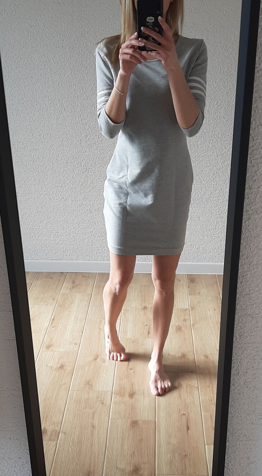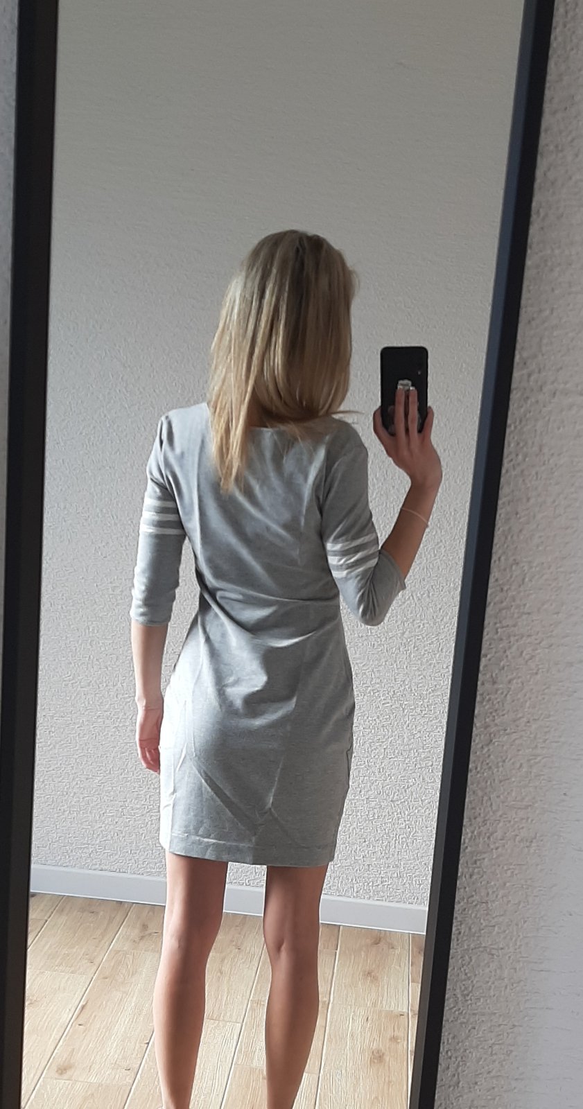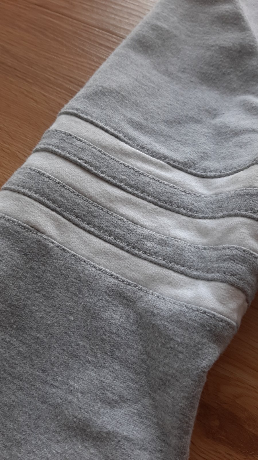 Ručne šité šaty mojou maminou. Veľkosť XS-S. Svetlo sivá teplákovina, na rukávoch obzvláštnené 3 pásikmi
