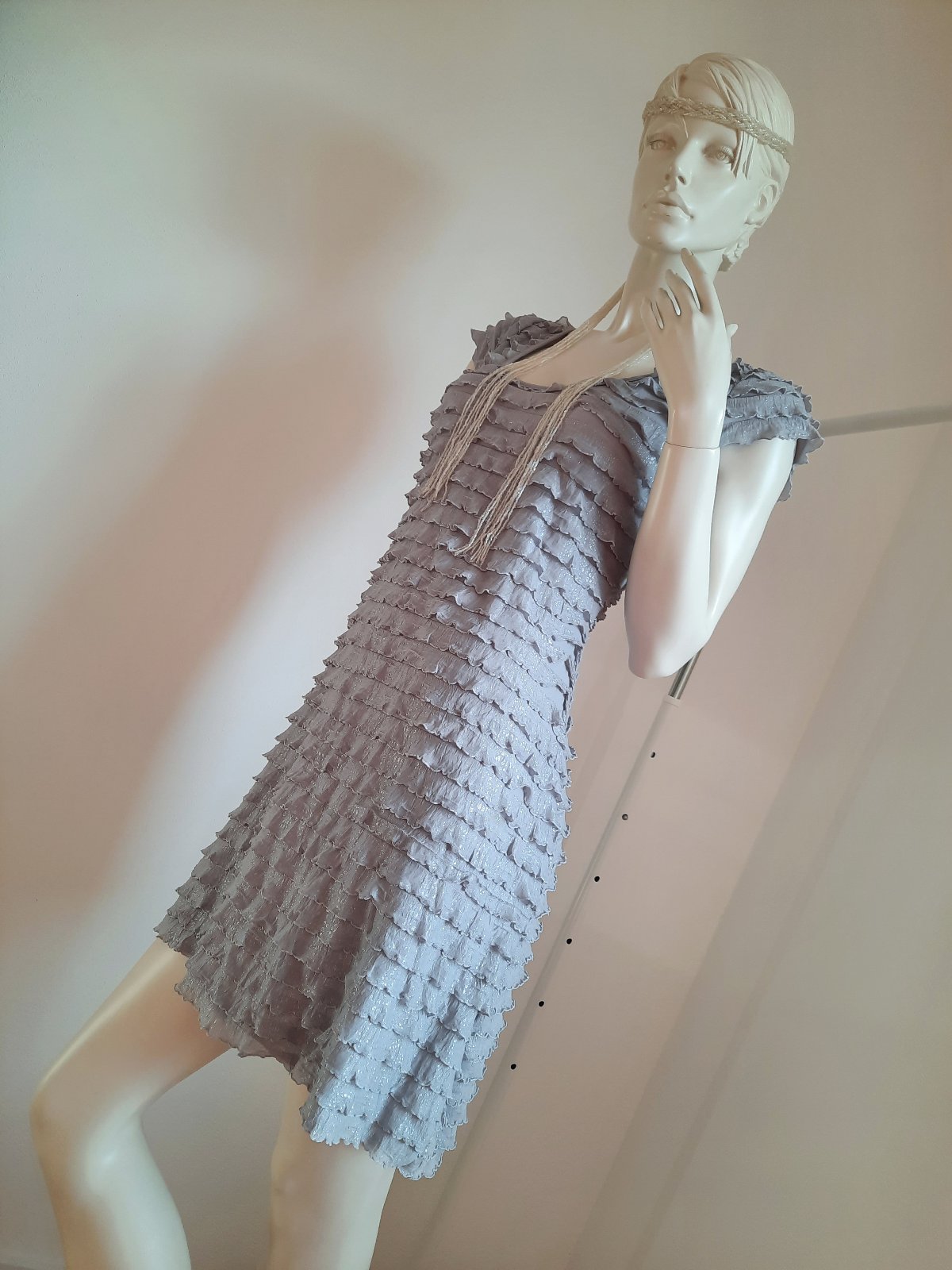 CLOCKHOUSE šaty s mini volanikmi, upletove, elasticke, vel S
