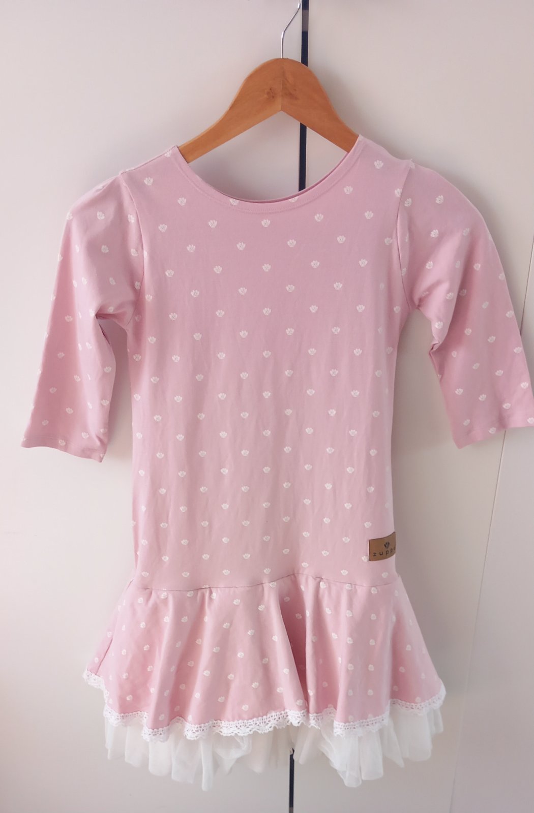 Šaty zn. Name it veľ. 146, 100% polyester, okrem rukávov podšité, farba jemná pudrovo ružová alebo ružovo fialková. Dĺžka: 77 cm Šírka pod pazuškami: 37 cm Rukáv: 39 cm Asi 2x oblečené, bez poškode...