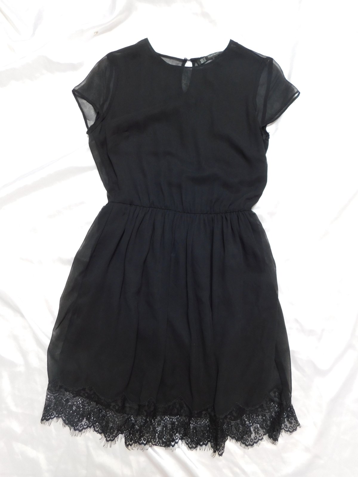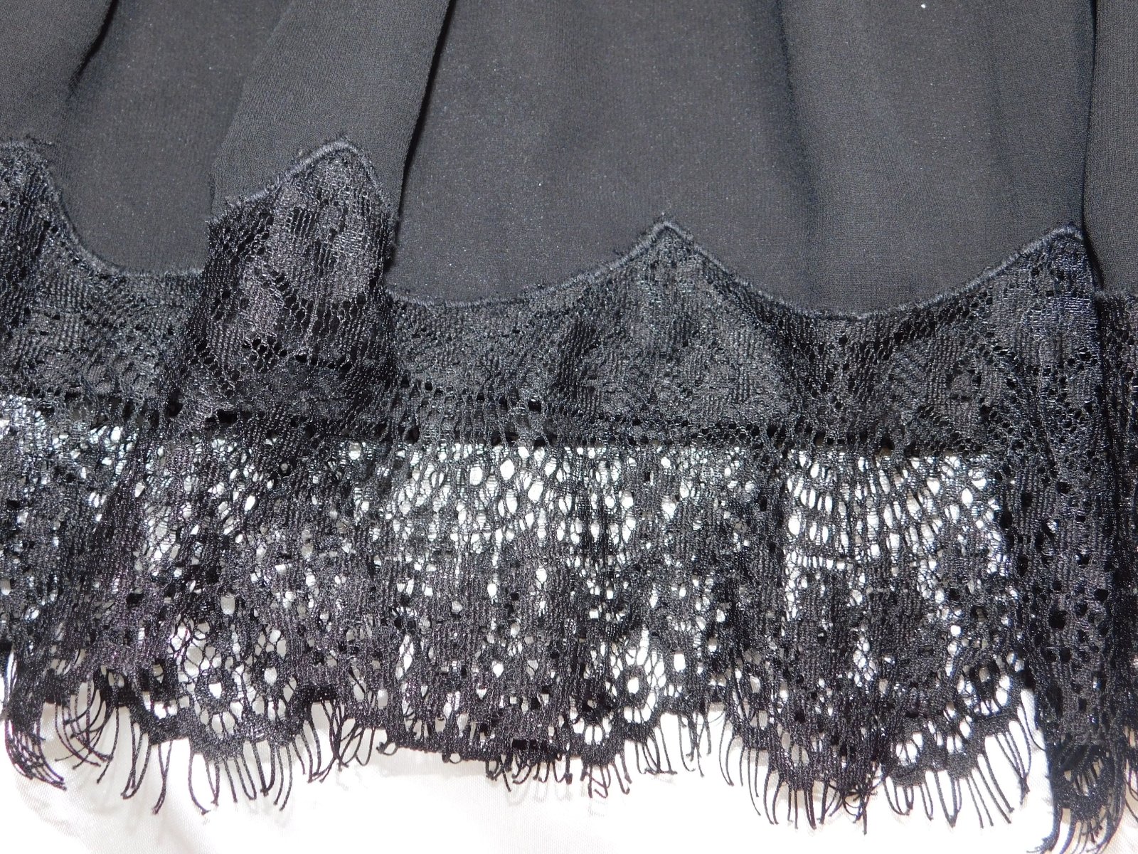 Pekne šaty,čiernej farby,na spodku pekna čipka,v pase gumka,s podšivkou.100=polyester. super stav. se28