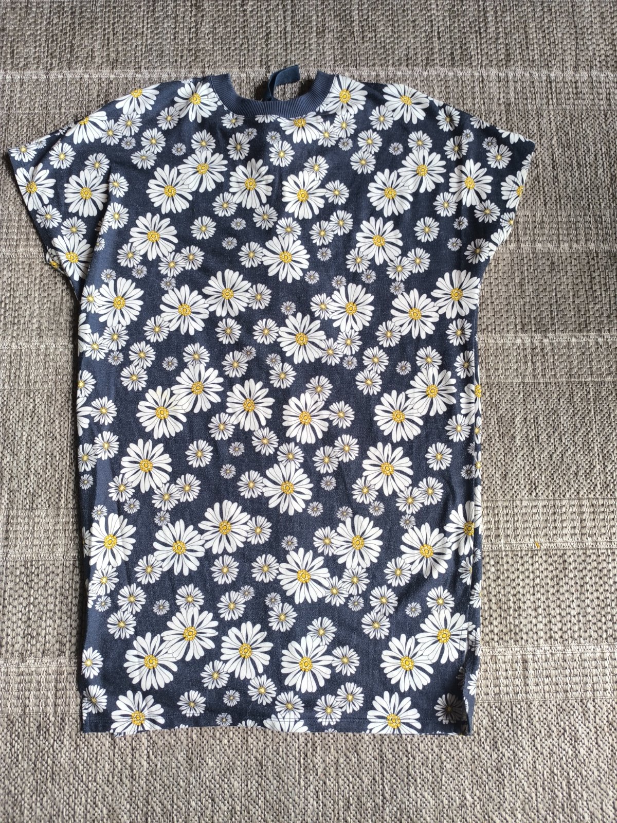 Oversized boxy tričkové kvetované úpletové minišaty s margarétkami. V dobrom stave. Veľmi pohodlné. Dĺžka 94cm, šírka 57cm.