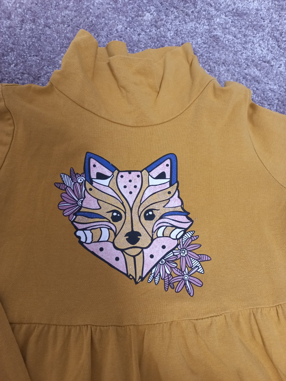 Raz oblecene trickove saty / tunika, rolakove, s peknou potlacou. Sinsay,,velkost 122, bezchybny stav.