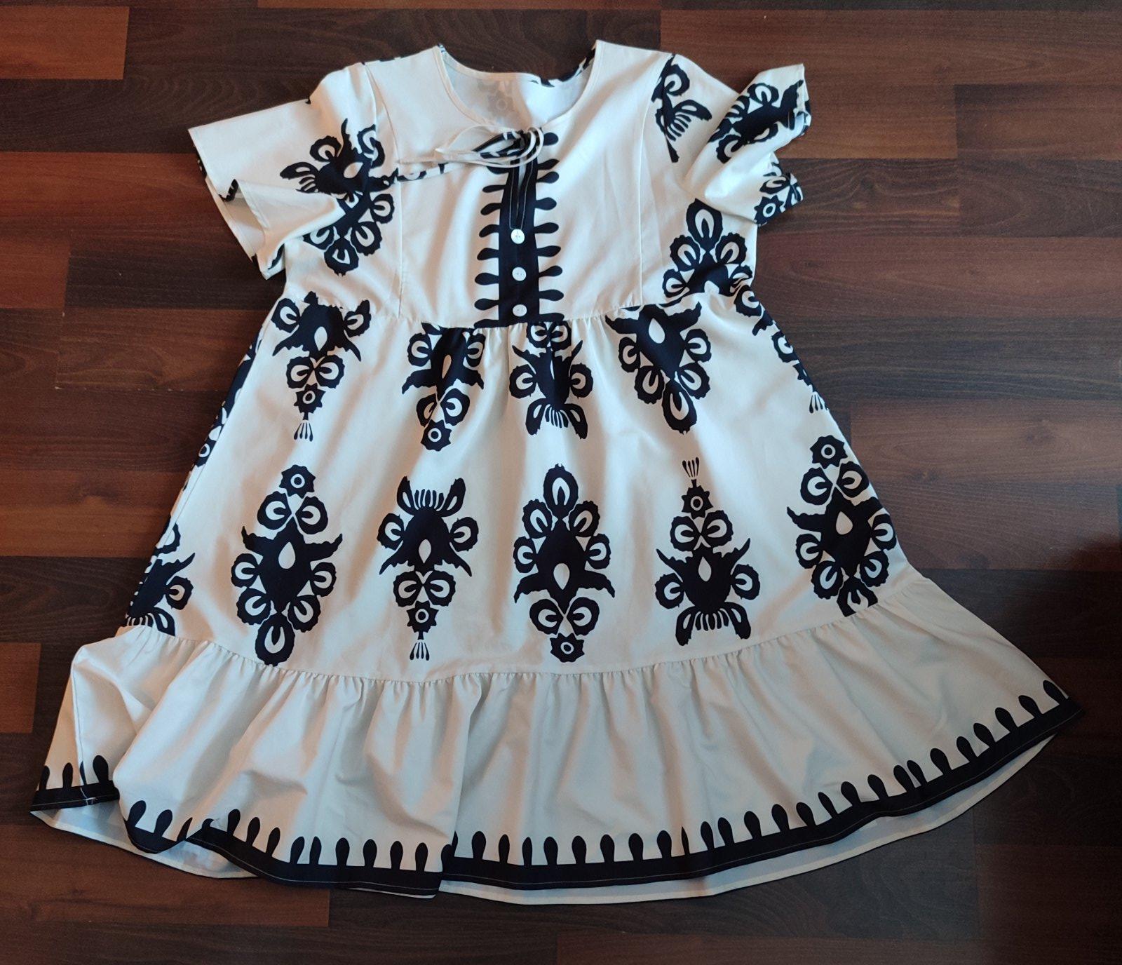 Predám veľmi pekné letné šaty veľkosť XL, celková dĺžka je 95cm a šírka cez prsia je 56cm. Šaty sú Áčkové ho strihu pekne ukážu na postave. Pár krát oblečené, nepoškodené . Cena 10e