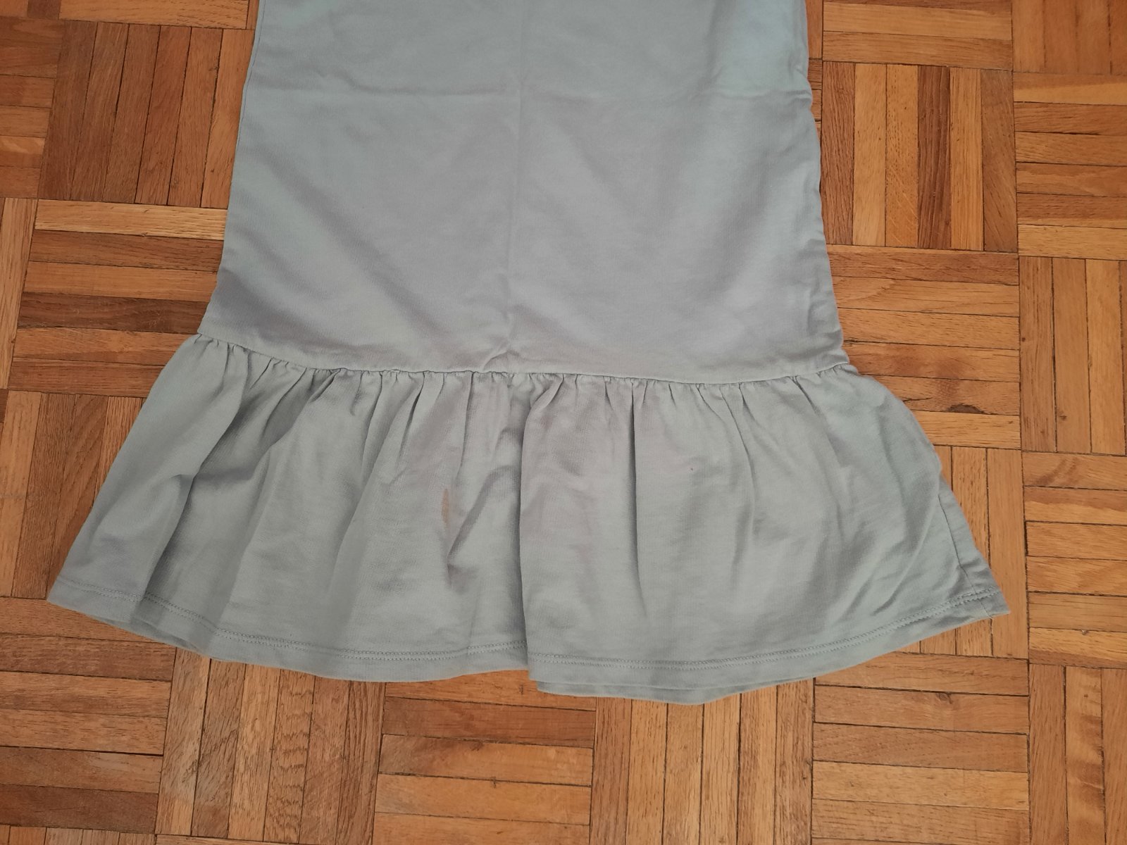 Pekné bavlnené bledosivé šaty, dole s volánom. Veľmi dobrý stav, iba na voláne 1 malý fľiačik, ale stratí sa to v záhybe.