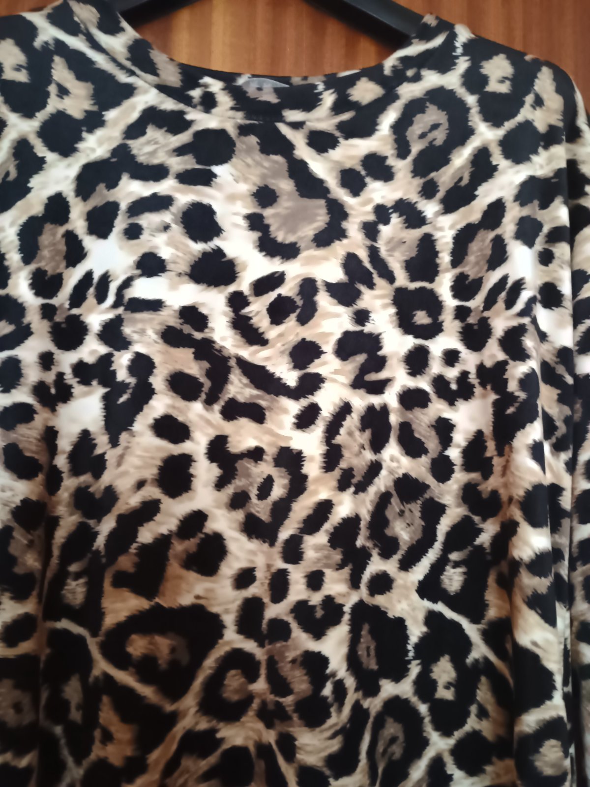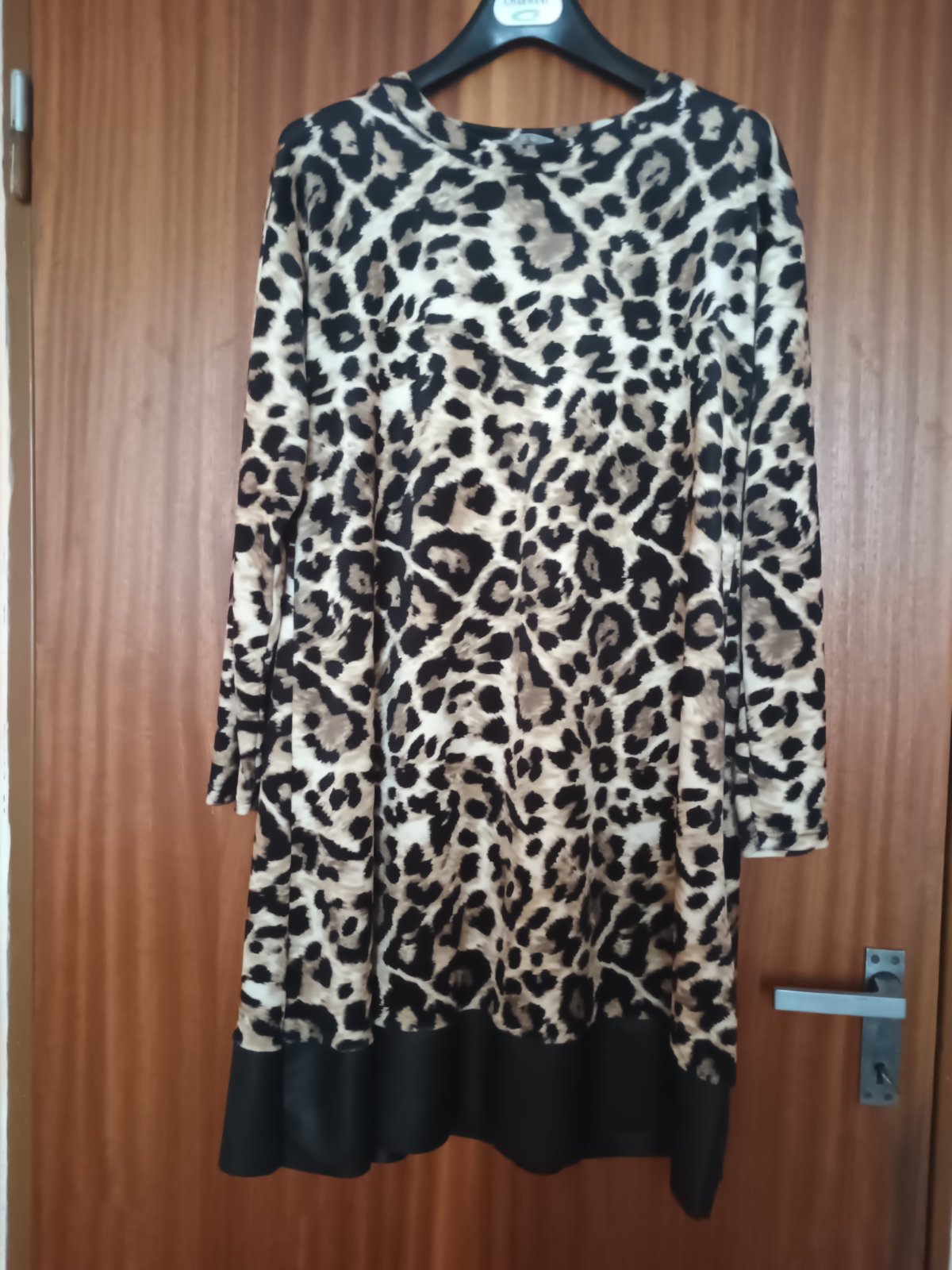 SkladomNové teplejšie šaty bez visačku,oversize,dĺžka 87 CM,cez prsia 108 v kľude,natiahne sa ,obsahuje elastan,v spodnej časti kombinované s koženkou.Dlzka rukáva je 51 cm.