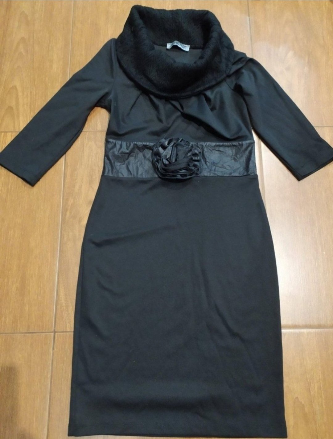 Upletove šaty,super stav,zdobené kozenkou a kvetom.Vhodne na prech.obdobie,rolakovy golier