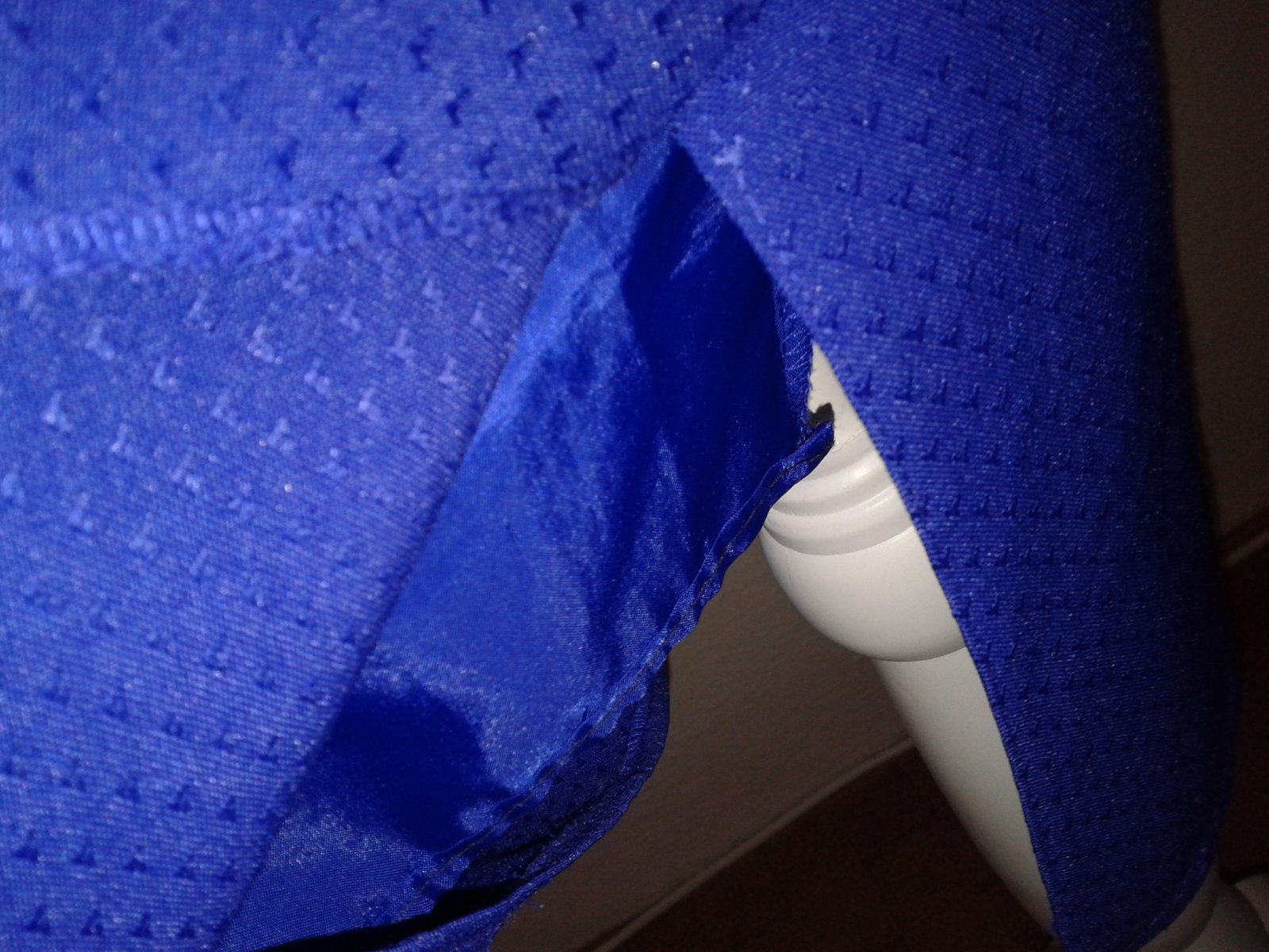 označ. 40, sú menšie, oblečené raz...podšité, len máličko elastické, krásna farba modrofialovej farby kombin. s čiernym bočným vsadením....dlžka 100 cm..prsia 47x2, pás 39x2, boky 49x2,