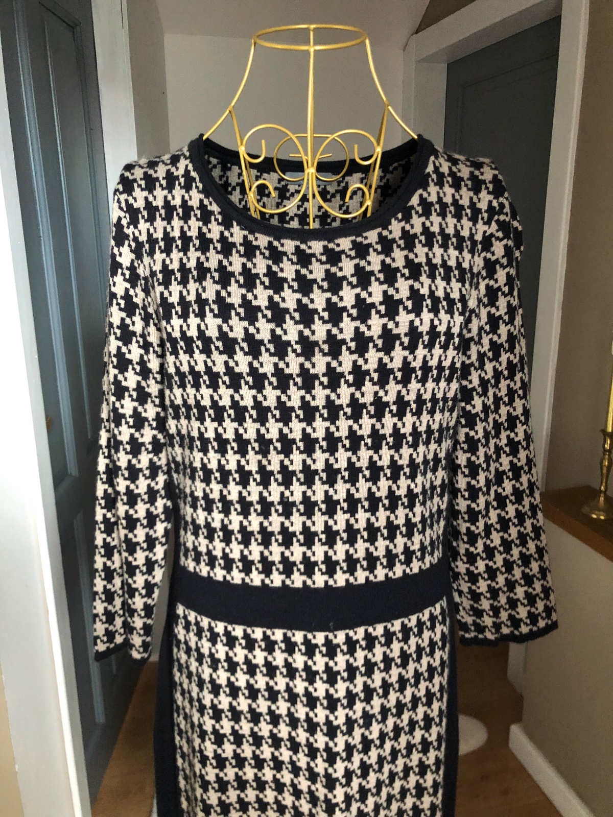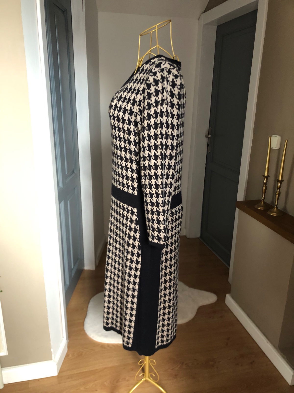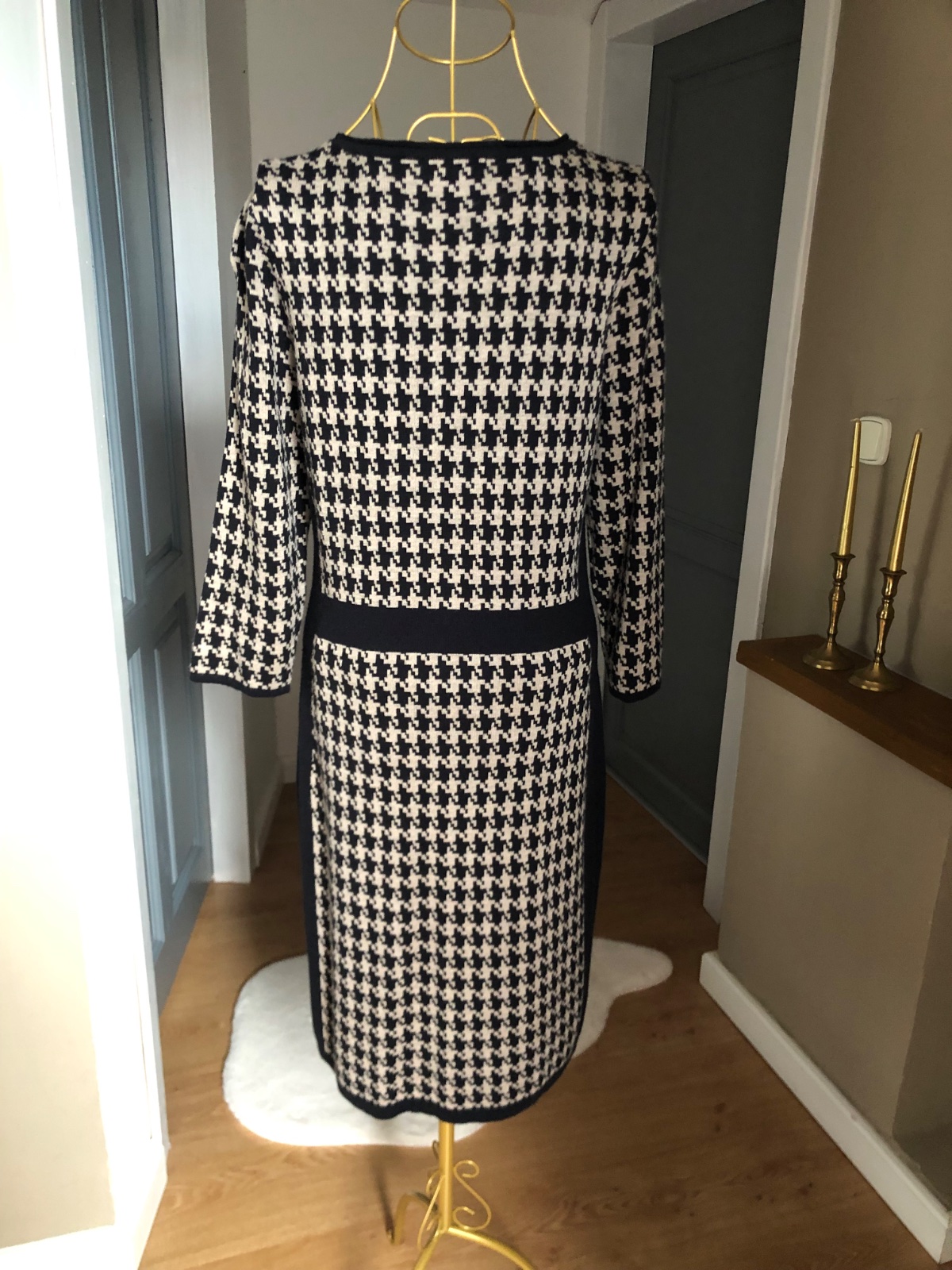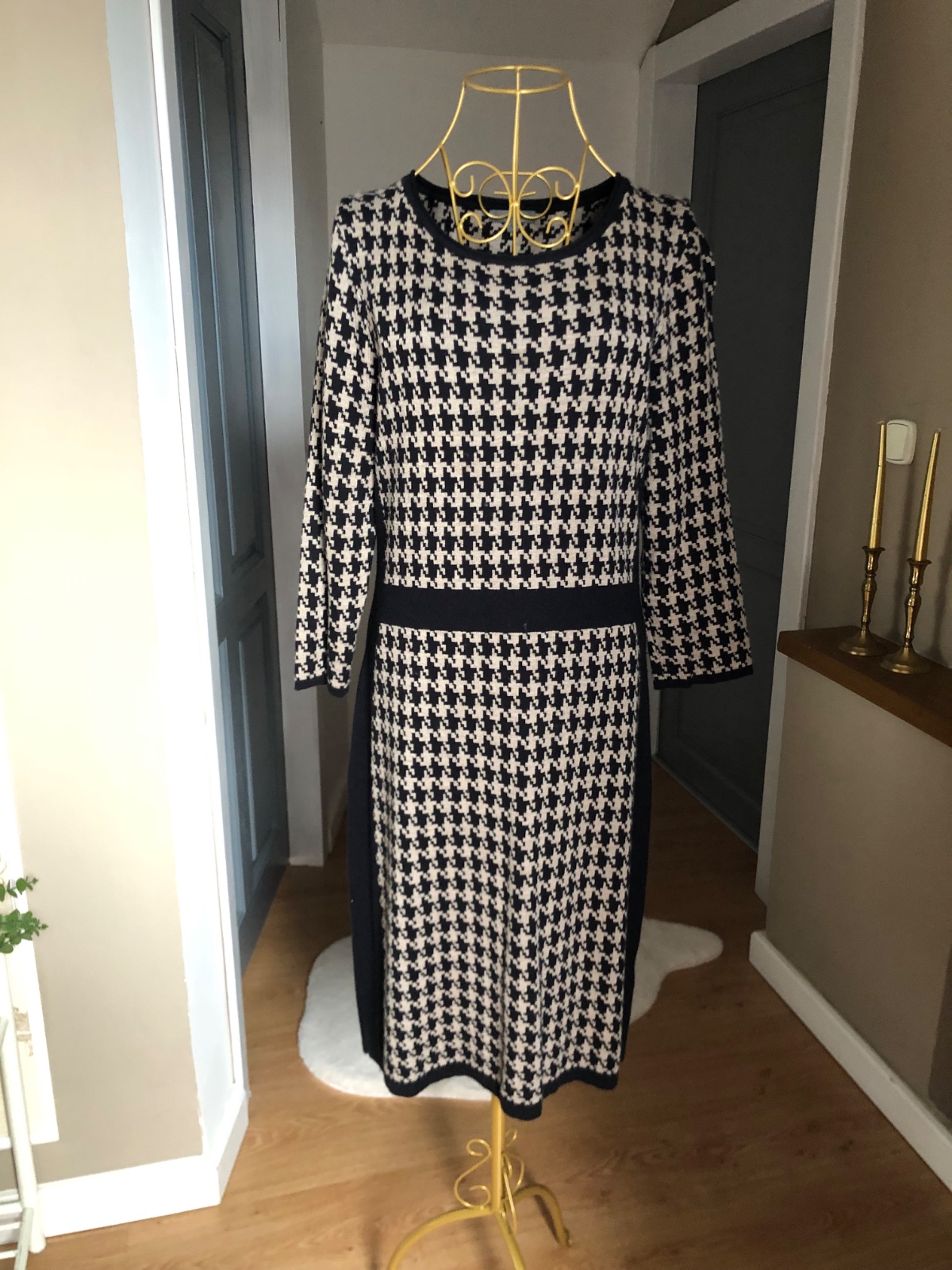 Kvalitné úpletové šaty, čierno hnedej farby, kohúti vzor, elastické, super stav.