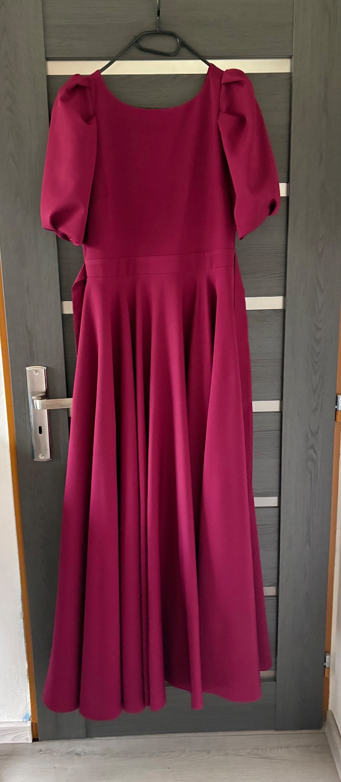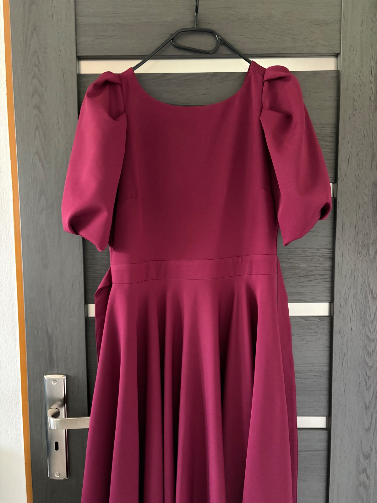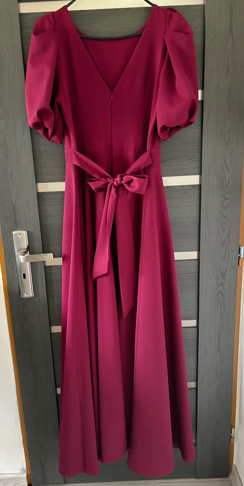 V týchto krásnych šatách vykročíte na spoločenskú udalosť s veľkou dávkou elegancie, šarmu a noblesy. Nadýchané rukávy a výstrih na chrbte dopĺňajú šatám romantický nádych. Vzadu sa zapínajú zipsom. Veľkostne niesu 44, ale sedia ako L/XL. Šaty sú nové.