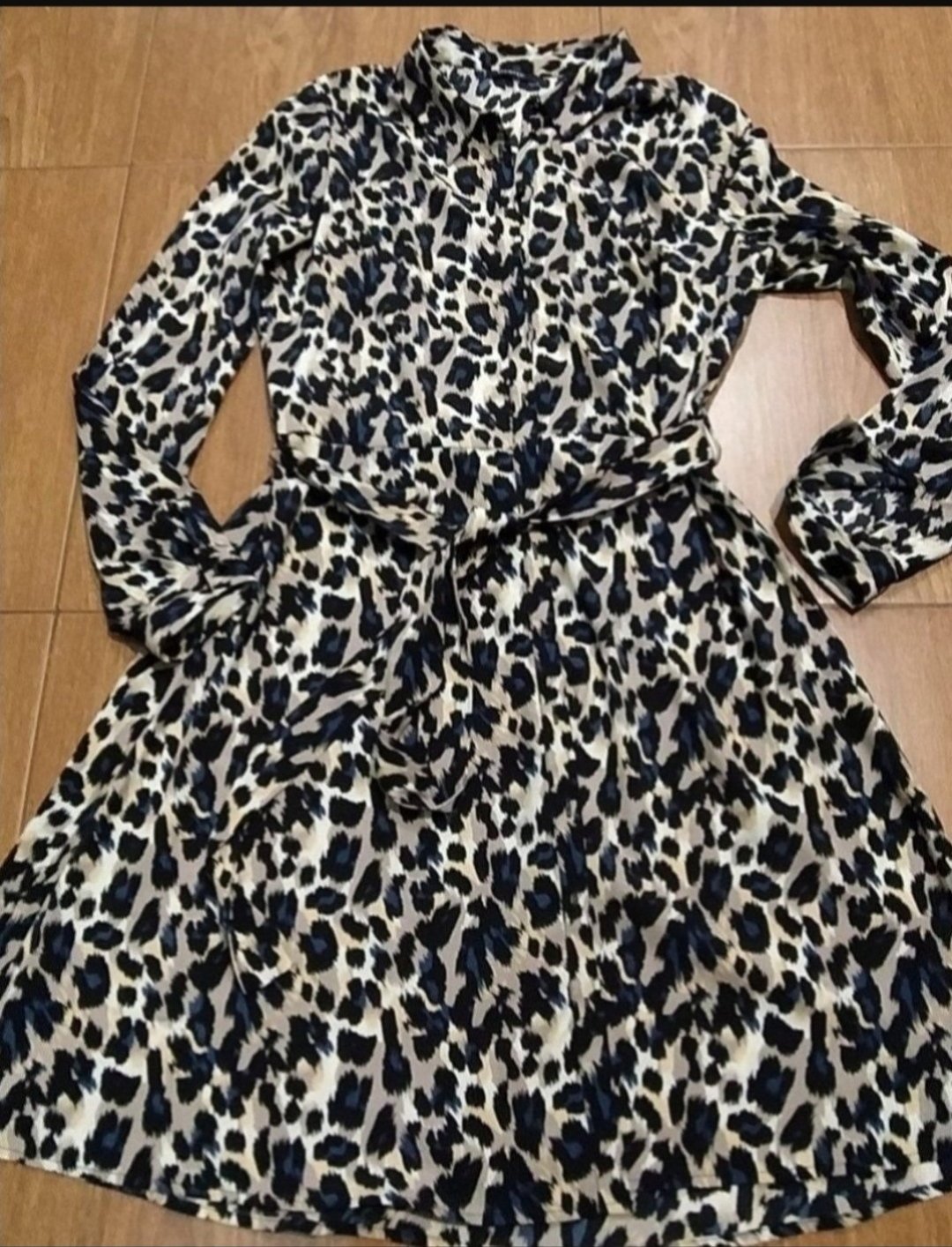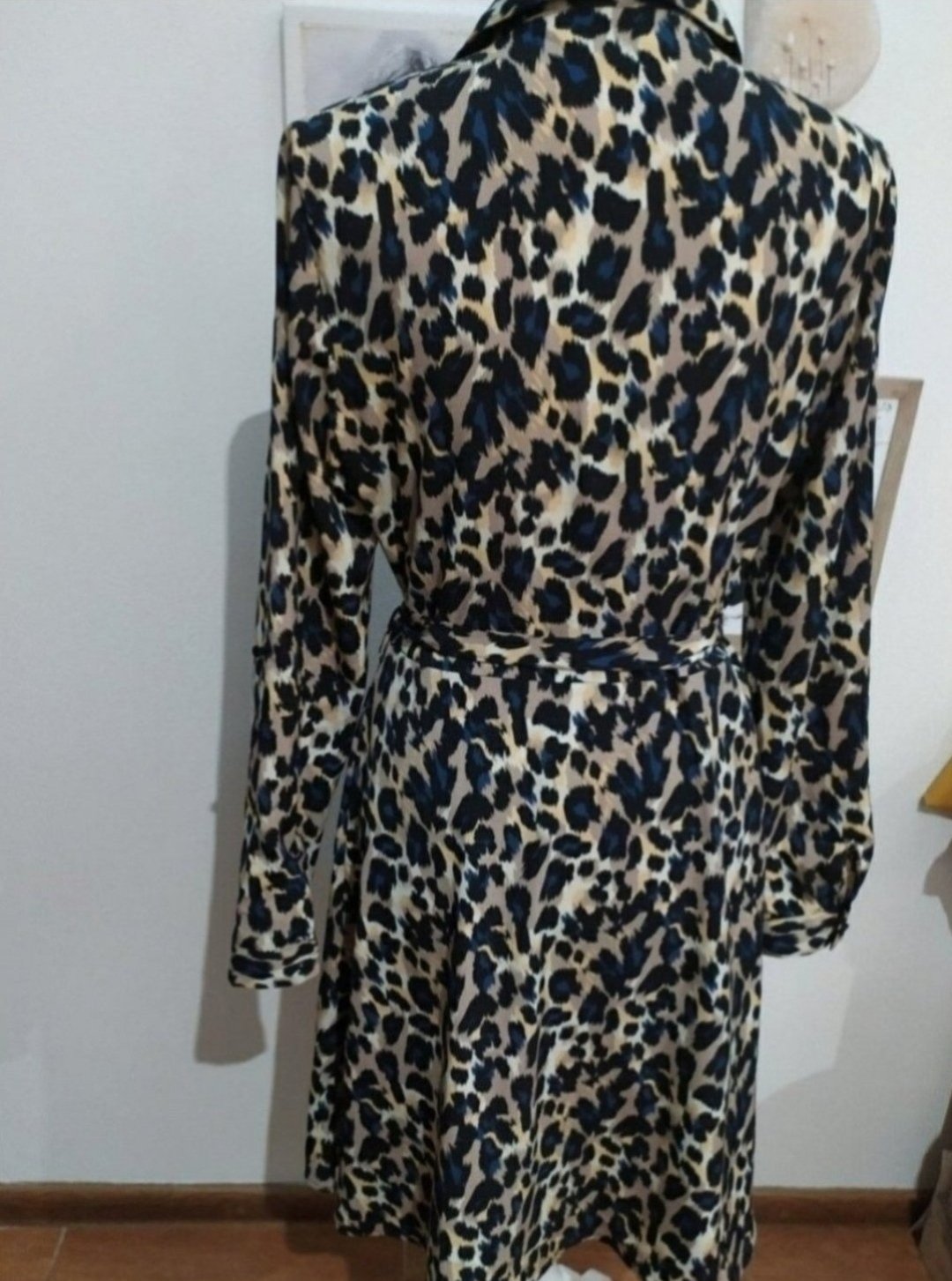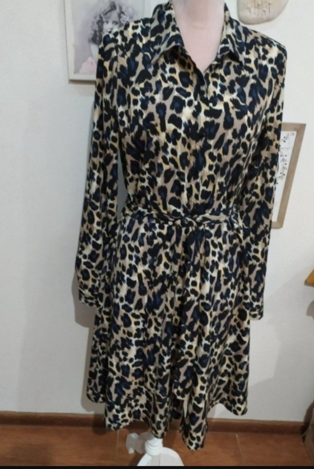 Krásne šaty z jemného materiálu, dľžka po lýtka, v pase sa sťahujú. Farba hnedá a modrá. Nové, len odstrihnutá visačka. Naživo ozaj krásne.