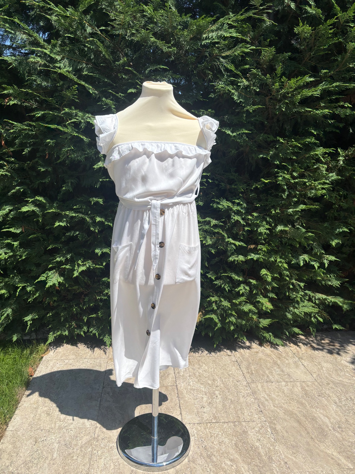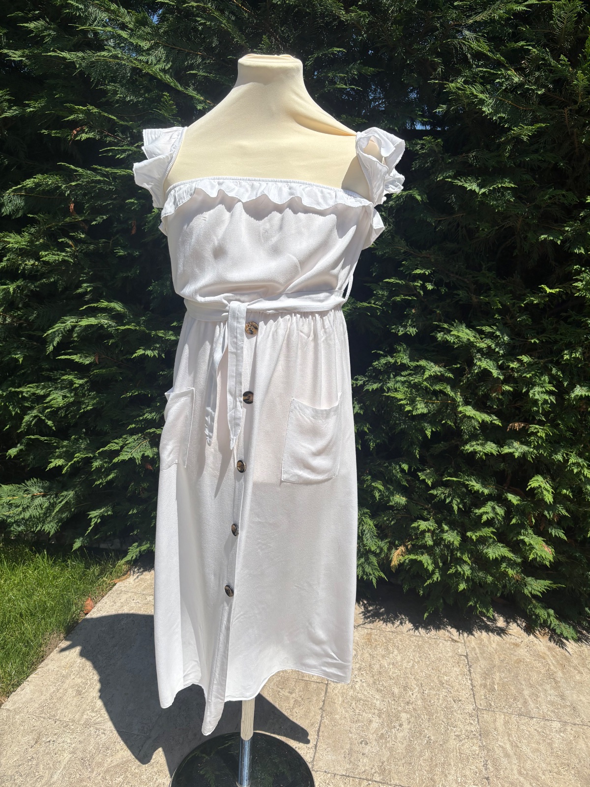 Ľahučké biele šaty s ramienkami, veľkosť S-M.