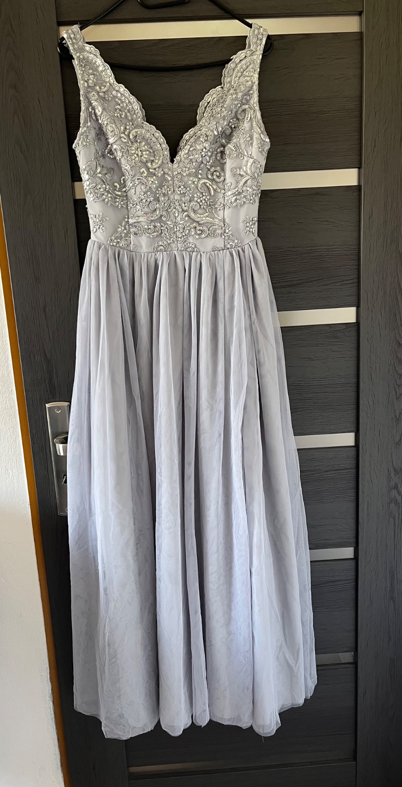 Nadherné elegantné šaty, bez chyby. Sukňa z tylu, rozparok na nohe. Parádne