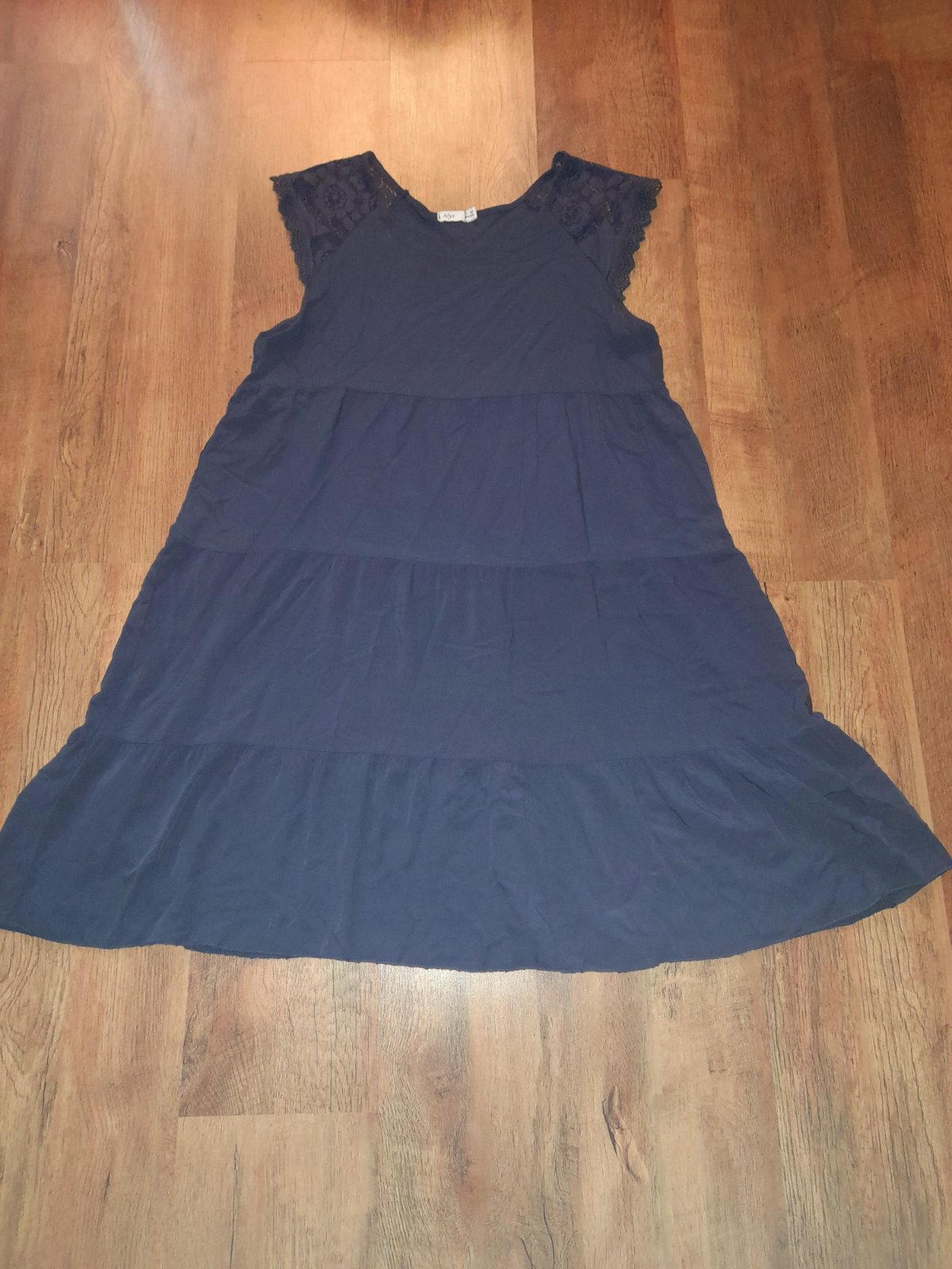 Predám krásne šaty, nosené,v super stave.Velkost písaná S/M... je to taky voľný, oversize strih, kľudne oblečie aj veľkosť L...farba je taka zvláštna oceľovo modrá.A ckovy, rozširujúci sa strih,rukavky sú krajkove.