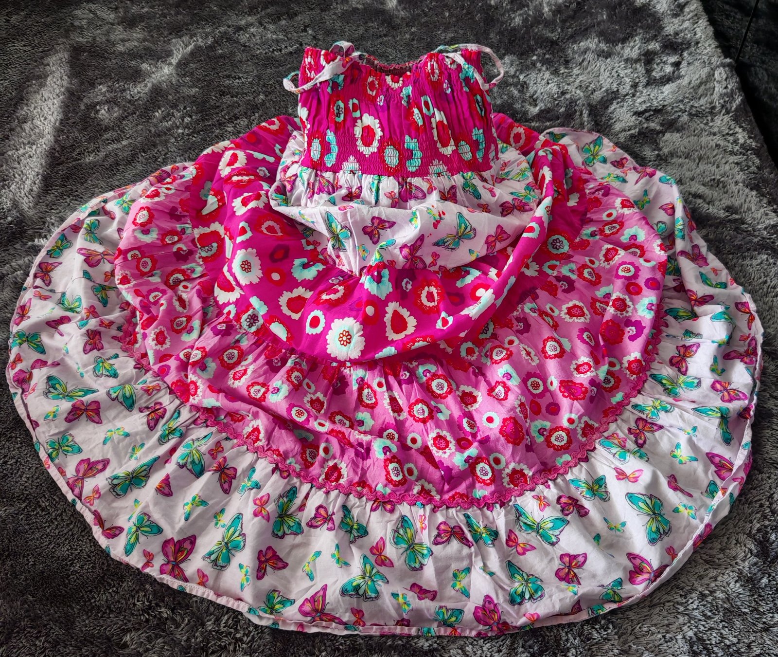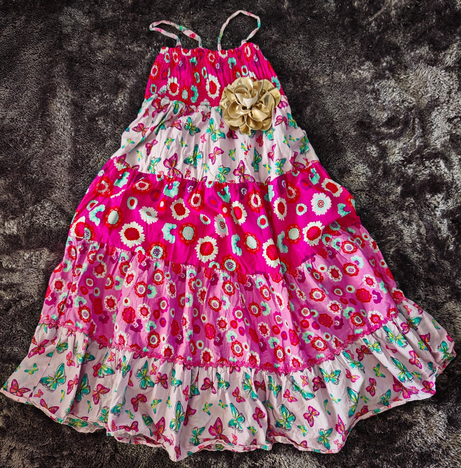 Krasne maxi saty na ramienka,vrchna cast je gumickova,cize sa prisposobi aj baculkam,suknova cast podsita,100% bavlna,bez chyb,pisana velkost 8-9r
