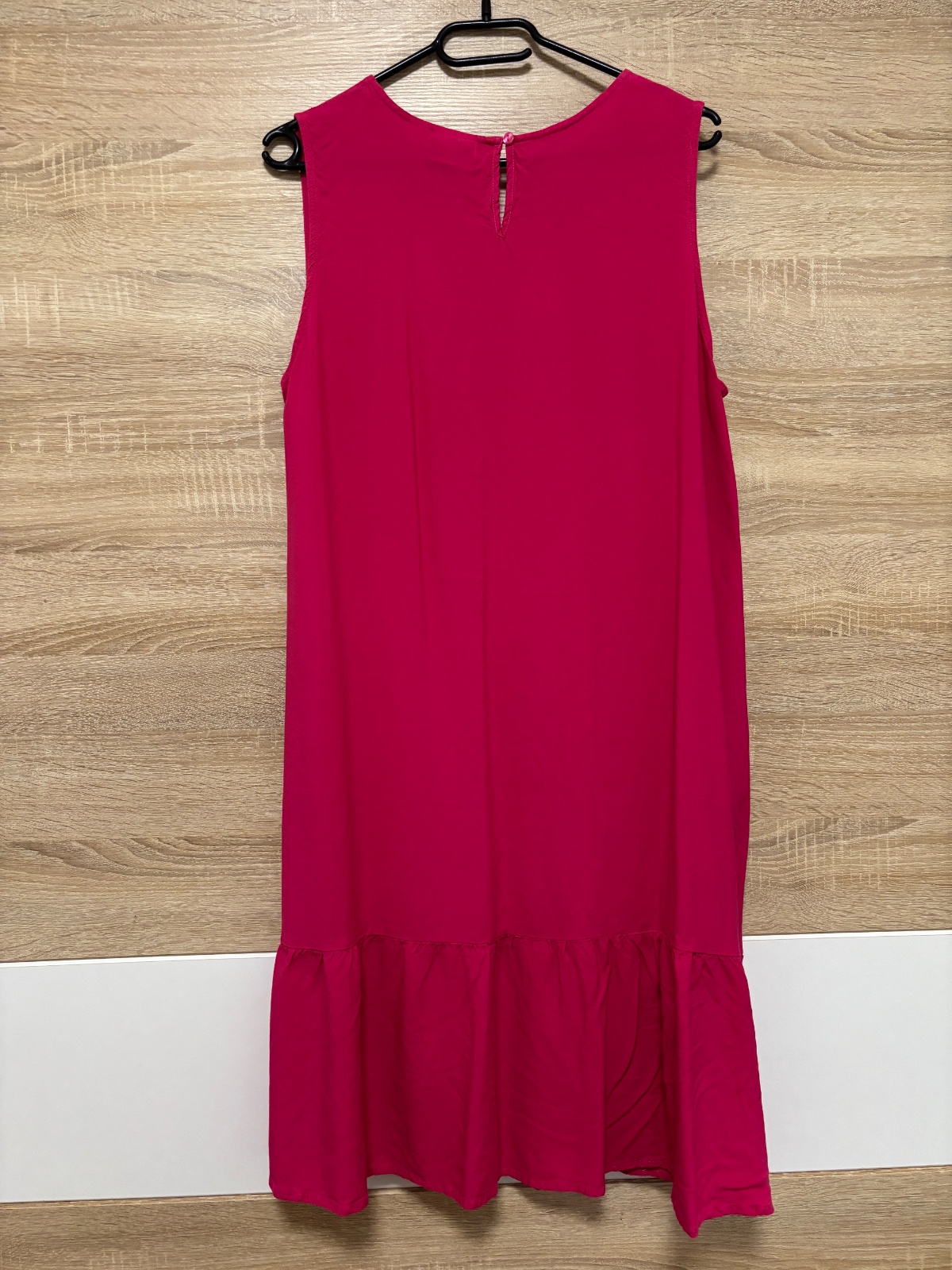 Letné elastické podšívkované šaty s obliekaním cez hlavu. Zadná dĺžka je 95cm, poloobvod cez prsia 50cm.