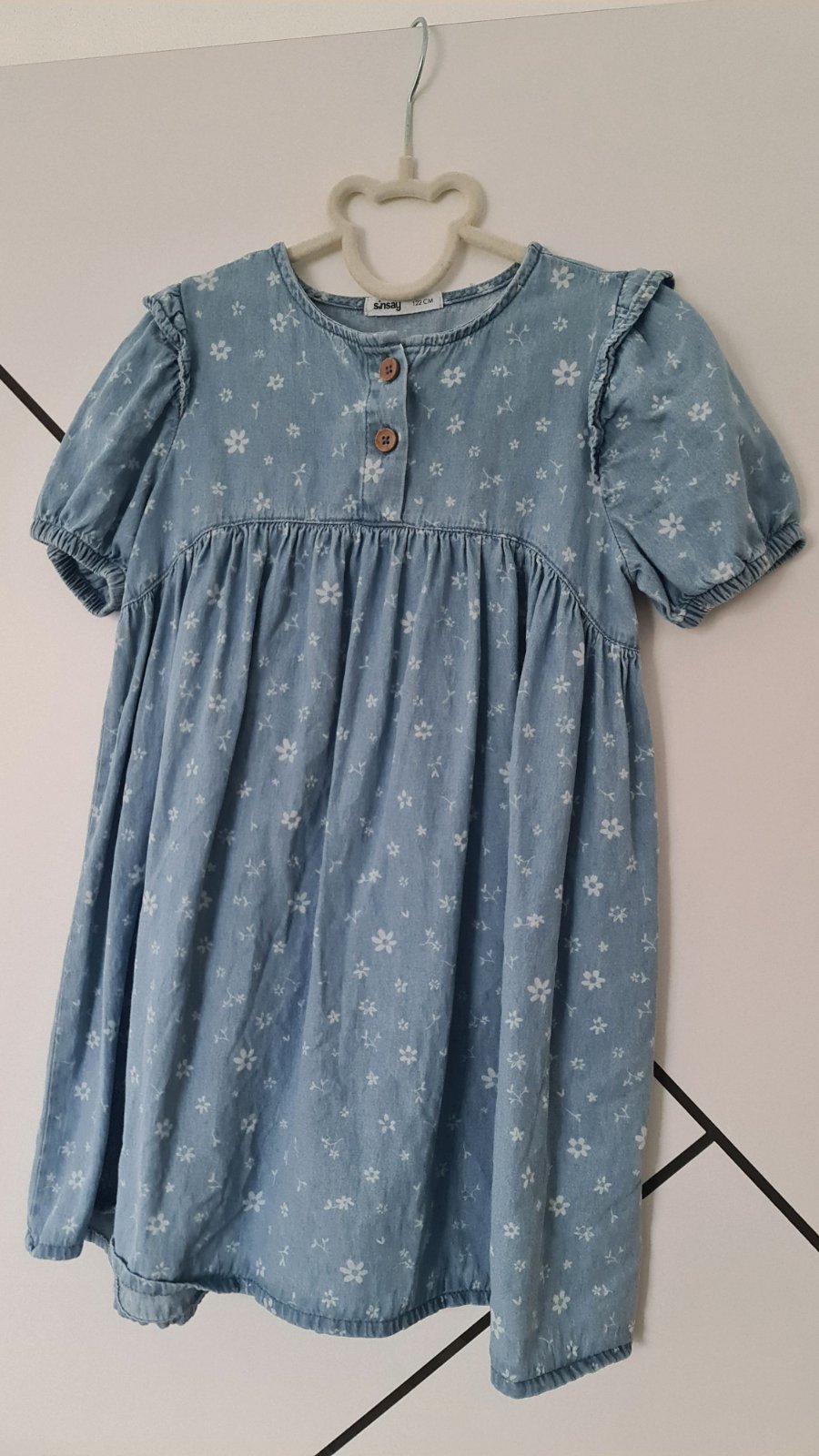 Denim riflové šaty pre dievčatá, veľkosť 122, značka Sinsay, potlač- jemne kvietky.