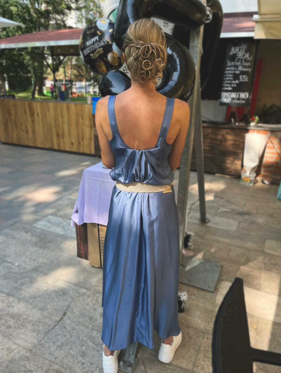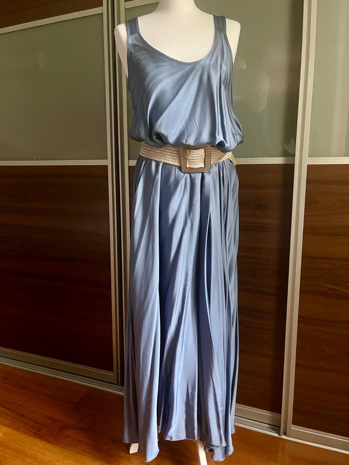 Krasne dlhe saty, vhodne ci na bezne nosenie alebo niaku oslavu, dlzka 135cm. Oblecene boli iba raz na oslave. Opasok nie je sucastou. Ide o taliansku znacku King Kong.