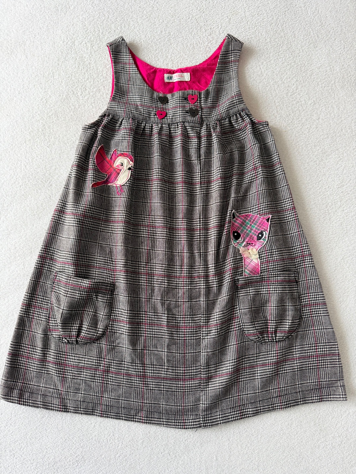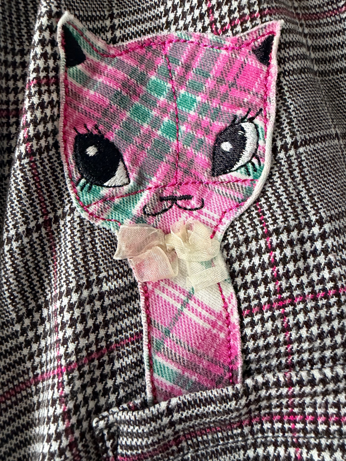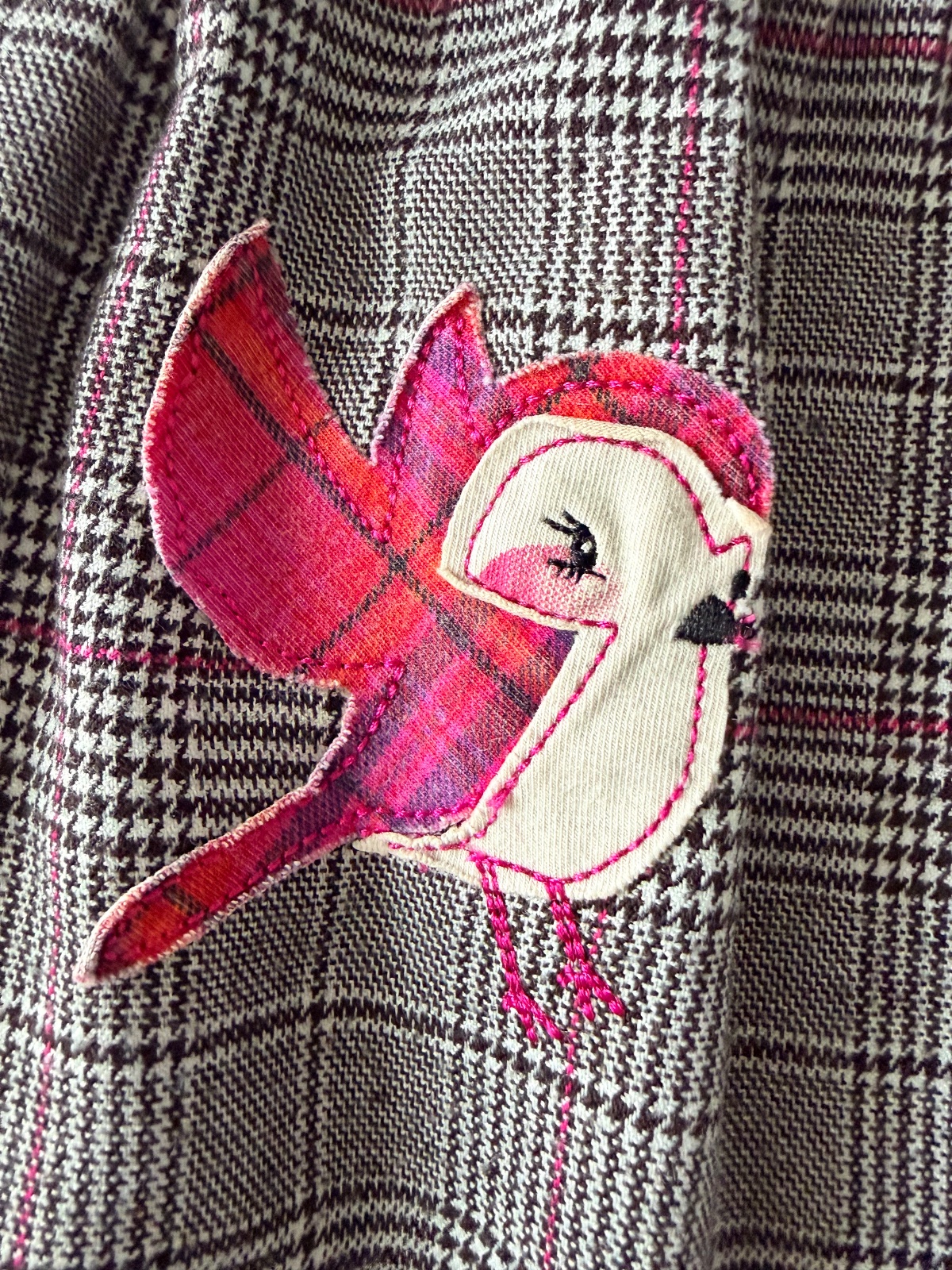 Kárované šaty s mačičkou a vtáčikom