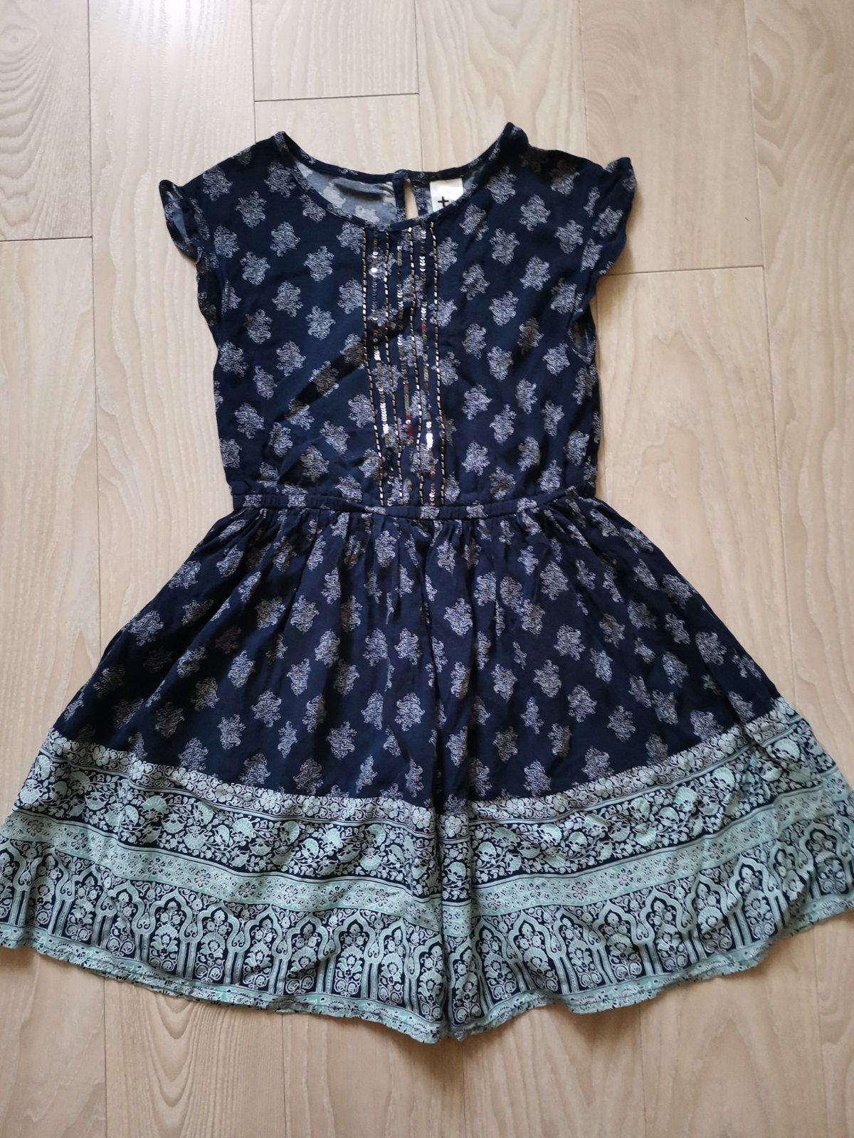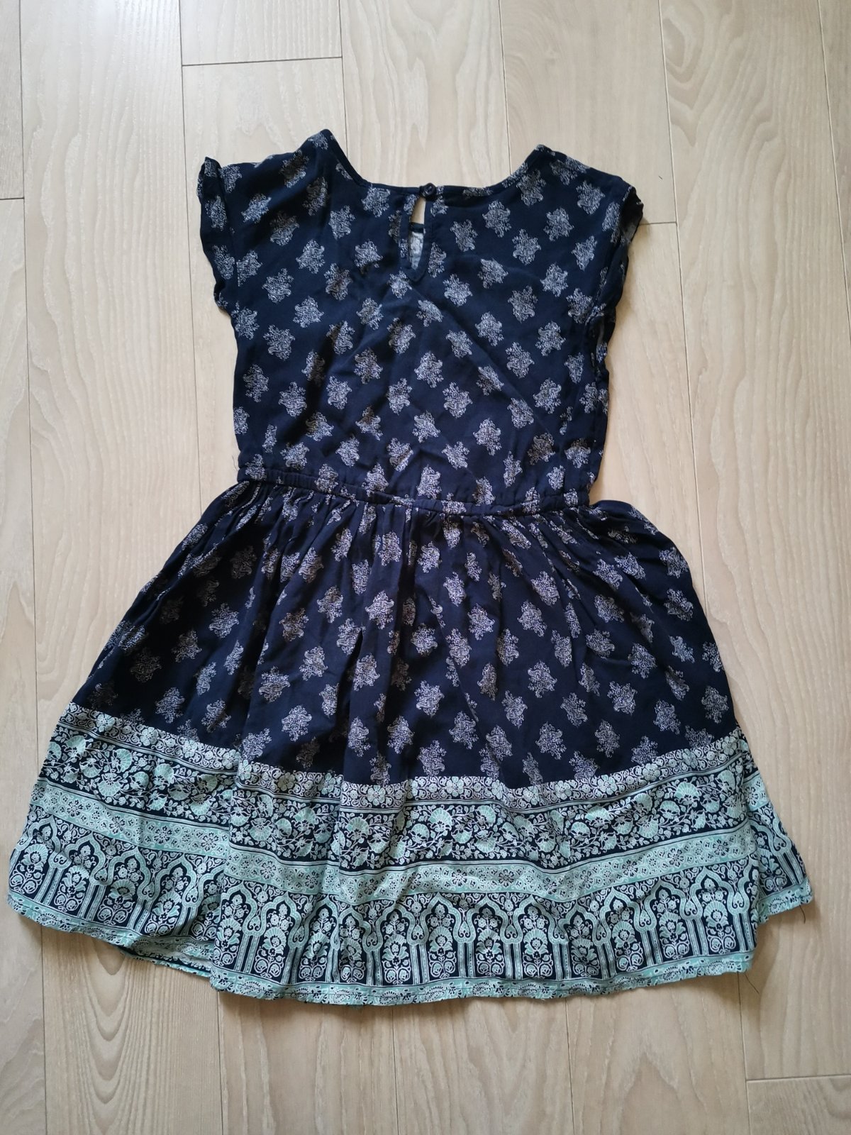 bavlnené plážové šatky, nosené, dobrý stav, vrchný diel je pružný, poprešívaný gumičkami, veľkosť písaná 134/140 skôr 134 dĺžka s ramienkami je cca 70cm, šírka pod pazuchami v kľude 32cm