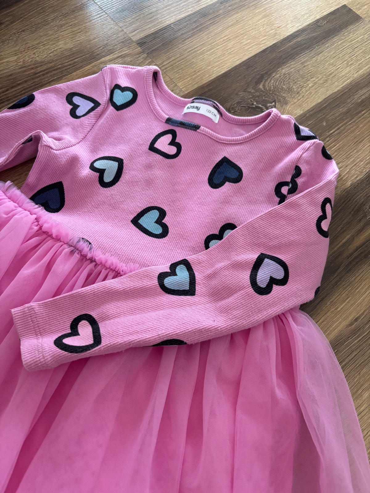 Predam saty zo Sinsay, na stitku velkost 122, my sme nosili ako 110-116, premeriam. Krasna ziva farba. Poskodenia som nenasla ziadne, pekny stav.