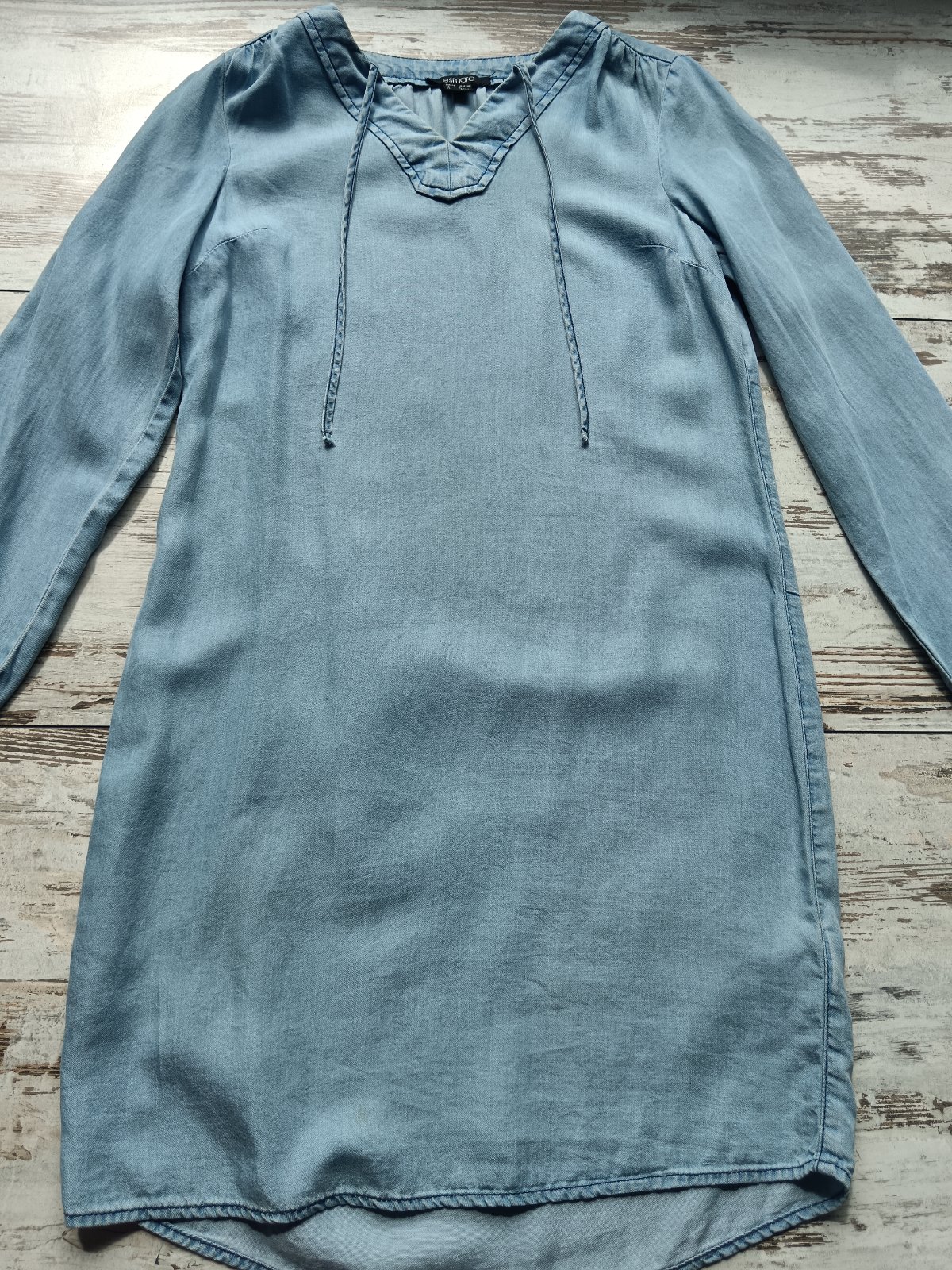 Dámske ľahké džínsové šaty s viazaním, veľmi pohodlné. Bez stop nosenia. Malo oblečené. Veľkosť 34/36