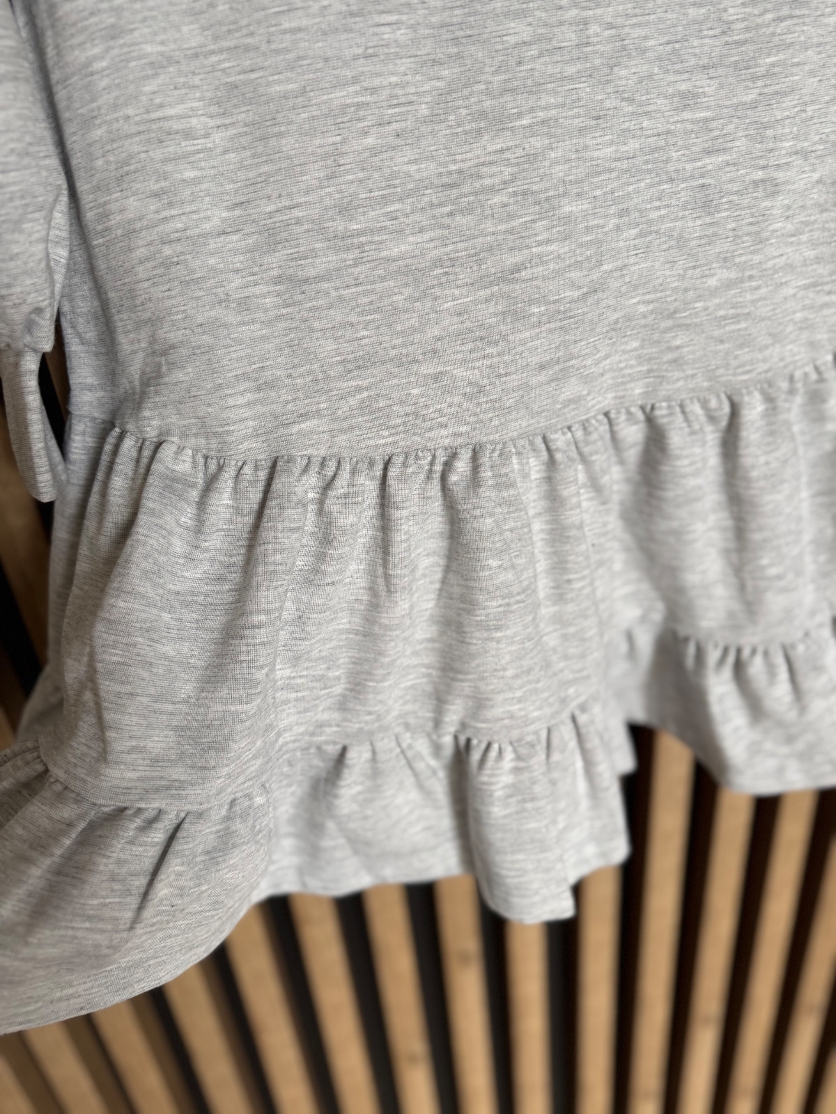 Sivé šaty, dĺžka 77cm, dĺžka rukáva od krku 64cm a šírka pod pazuškami 48,5cm.