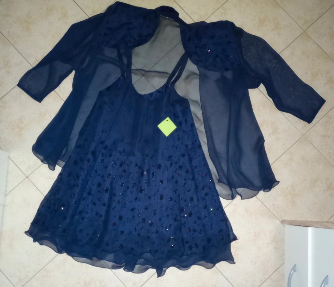 Predám šaty modrej farby veľkosť 44 cez prsia do 120 cm dĺžka šiat je 109cm v pase44cm majú spodnicku.