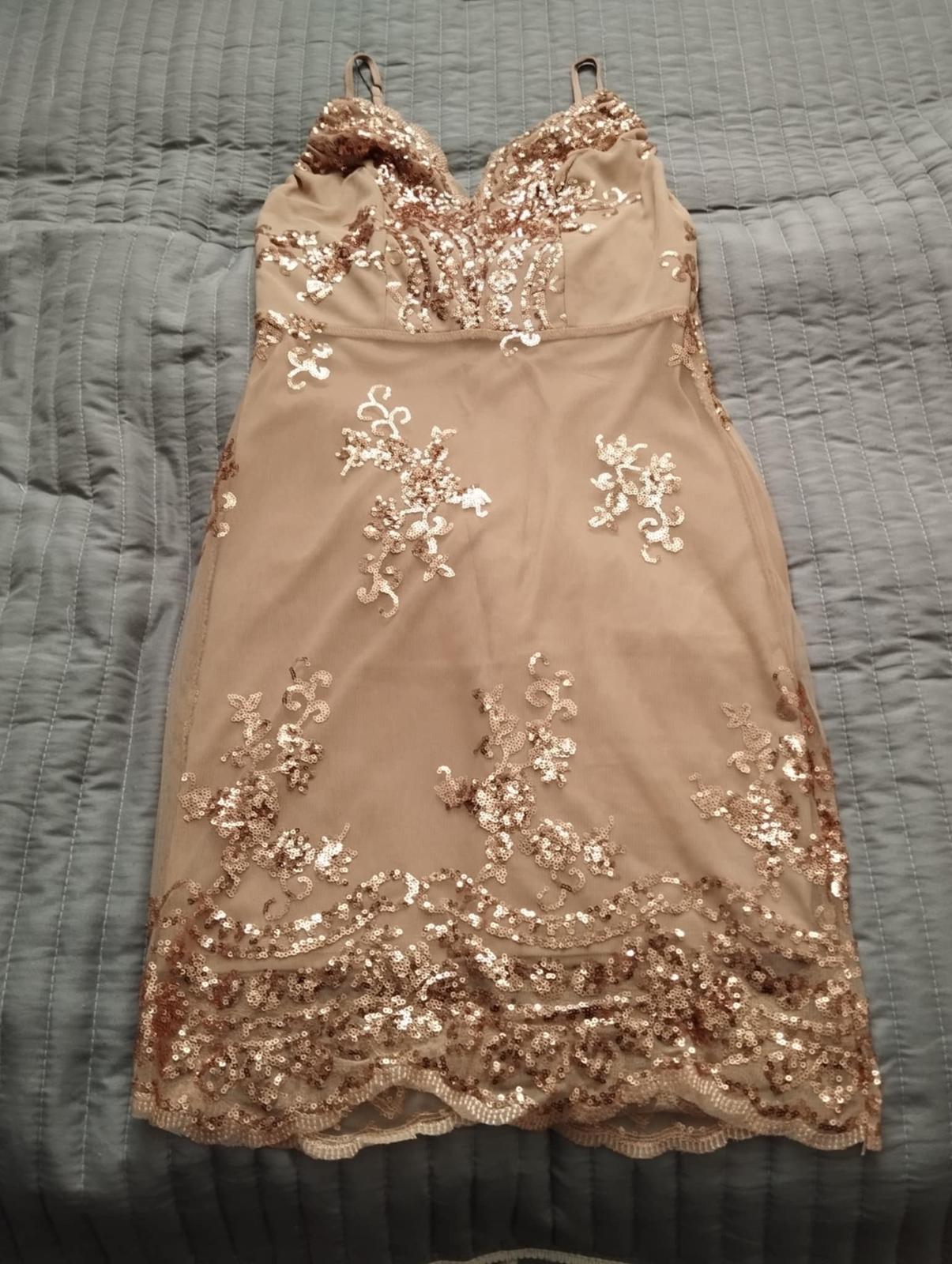 Šaty s trblietkami. Dĺžka 84cm. Raz oblečené.
