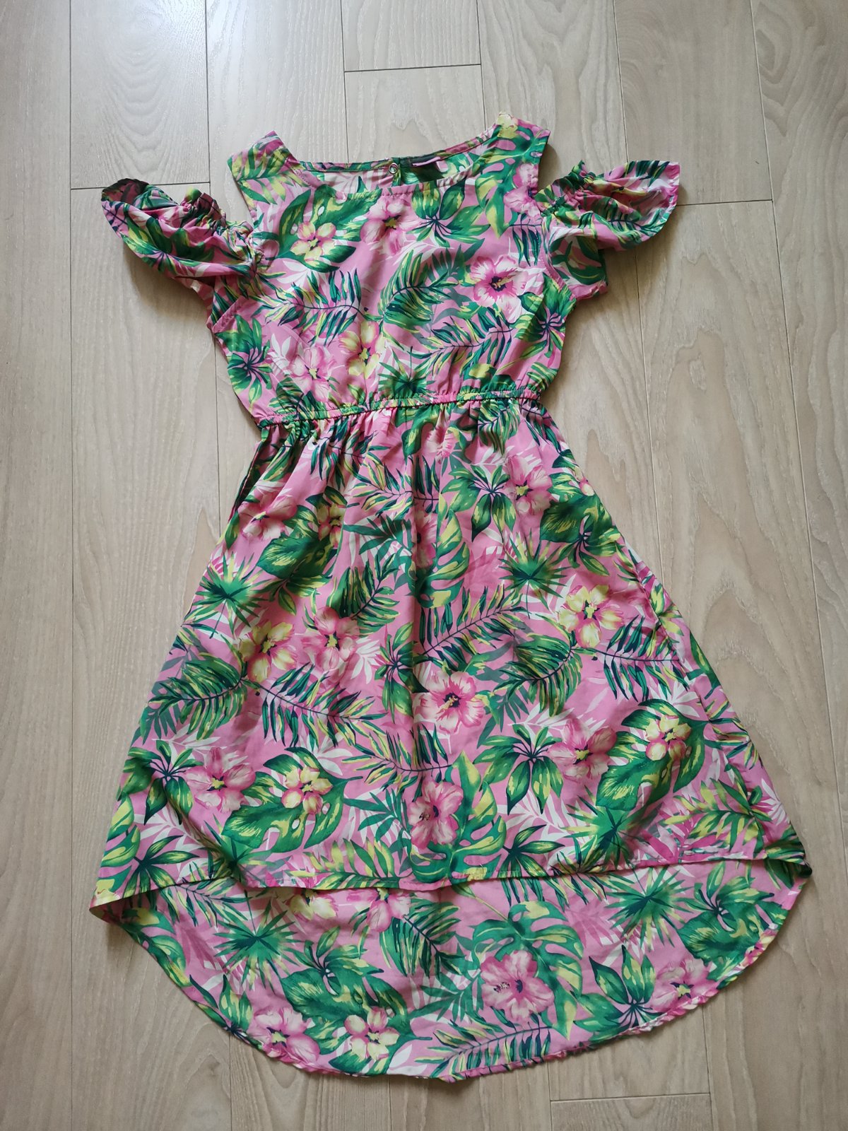 Krásne ľahké šaty, s pekným detailom na ramenách. V dobrom stave, nie je vidno nosenie