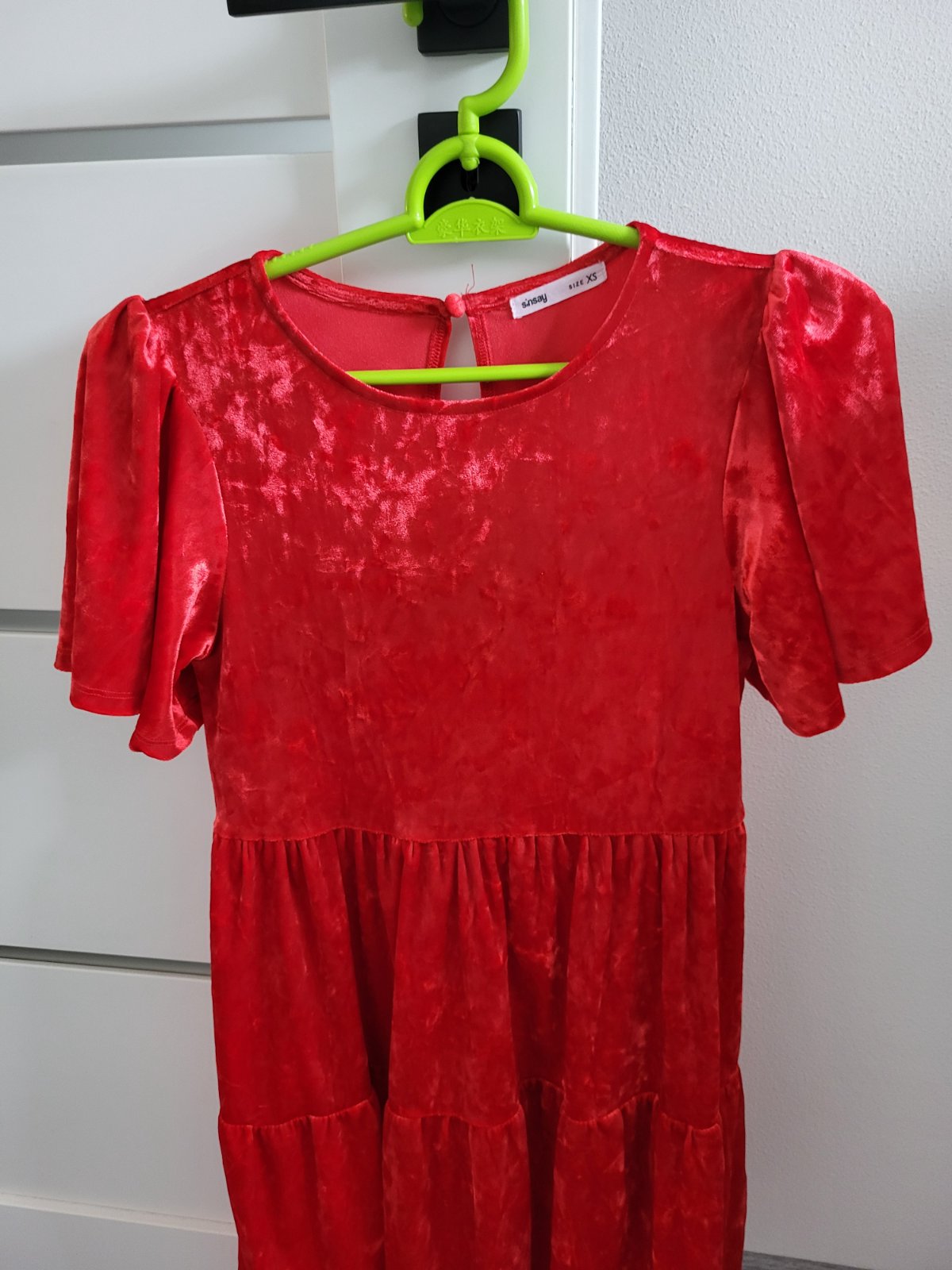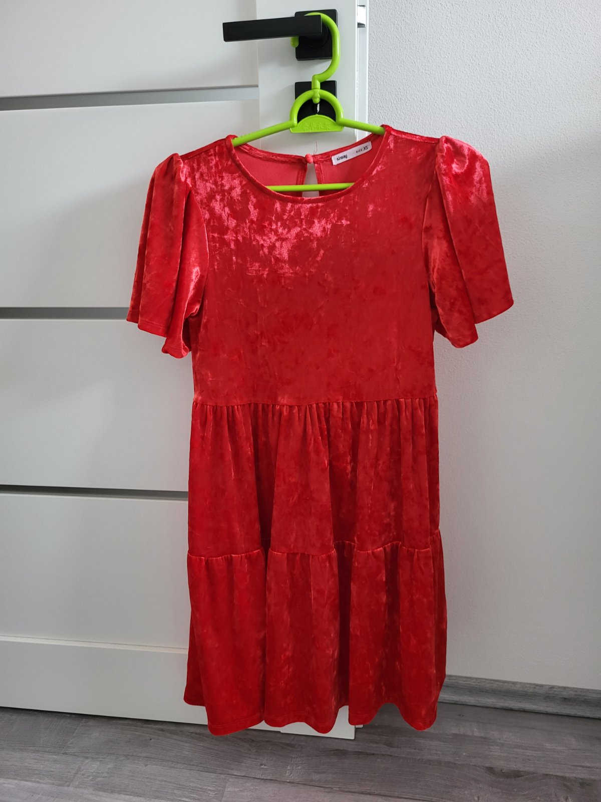 Krásne červene saty - ako nové.. Kupovane v roku 2023 v Auparku, oblečené 1x na Vianočnom fotení. Krásne sedia na postave.