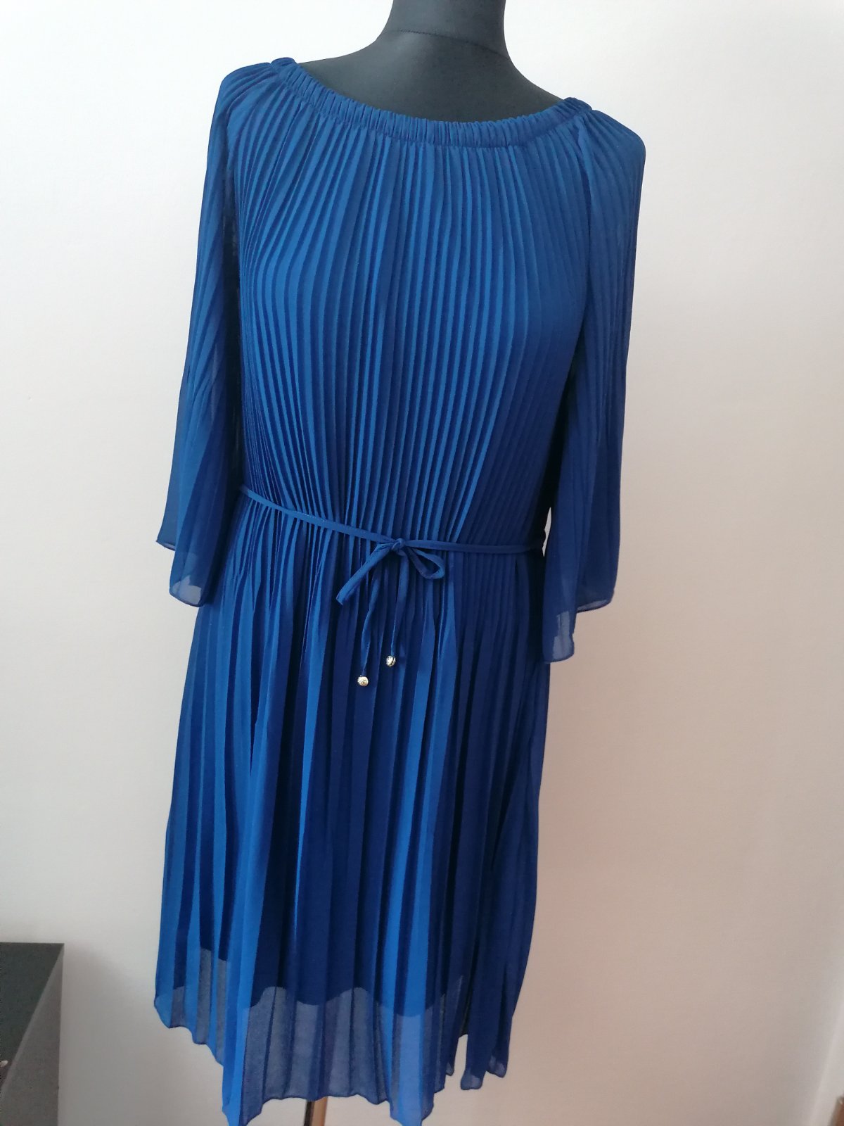 Šaty značky Chantall, luxusná kráľovsky modrá farba, pár krát oblečené. Materiál je veľmi kvalitný, kombinacia úplet a bavlna. Na bežné aj sviatočné nosenie. Bez opaska. Skvelý strih.dĺžka od ramie...