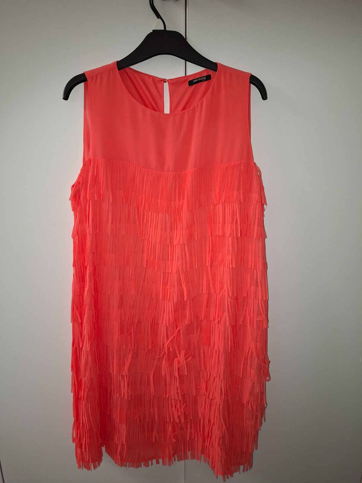 Saty vo velkosti 40,znacka orsay,vyborne sedia,zakryju vsetky nedostatky,farba oranzova alebo taka lososova,vzadu gombik,spodnicka vsita
