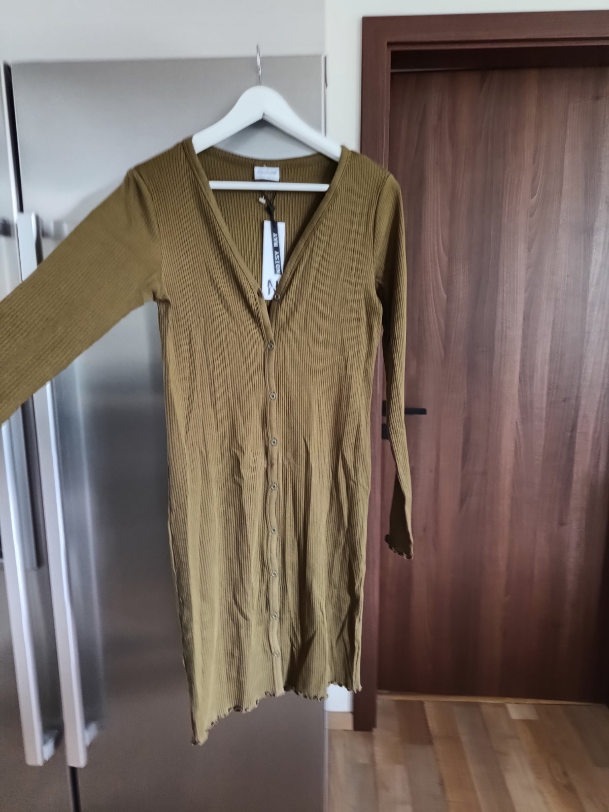 Predám krásne slim olivovo zelené letné ďalšie šaty, dĺžka cca pod kolená,zapínanie po celej dĺžke na gombíky, dajú sa rozopnúť.Material bavlna,elastan, príjemné na každodenné nosenie, nové ešte s visačkou, veľkosť písaná M.Dlžka-97cm