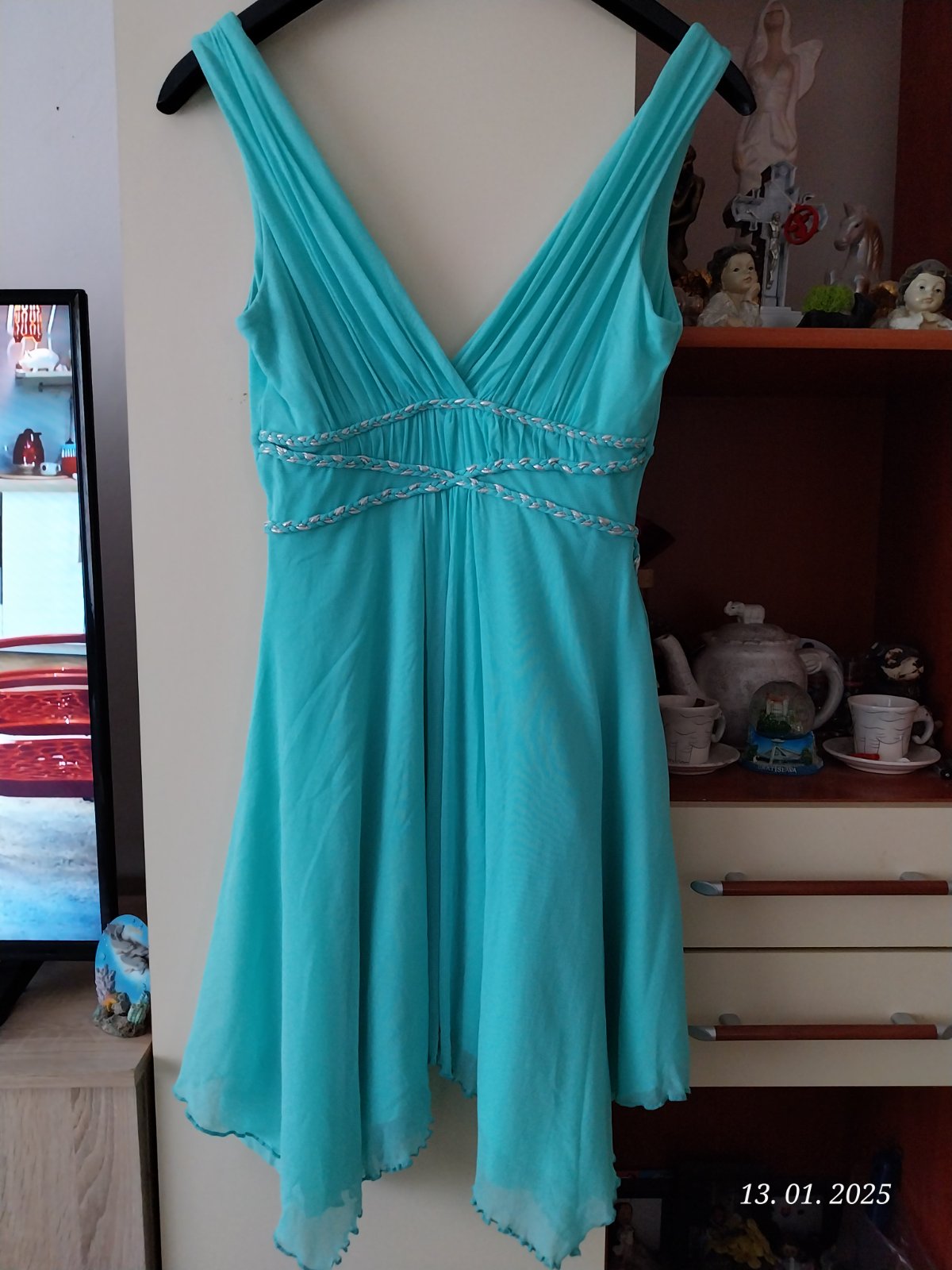 predám, veľmi pekné šaty, zaväzujú sa okolo krku, pekne ukážu na postave, u spodu volán, 1 krát oblečené na dovolenke, nekrčivý materiál