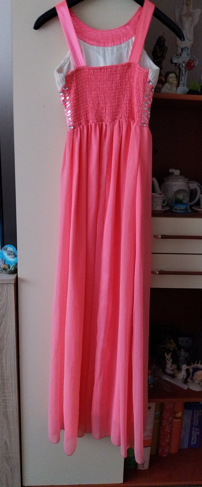 Predám 2 x oblečené dlhé šaty bielo lososovej farby. Veľkosť M, v prípade záujmu premeriam. Cena 4 eurá + poštovné.
