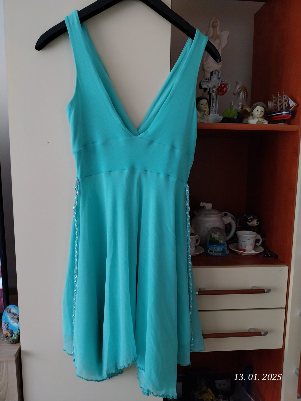 saty boli kupene minuly rok, velmi malo nosene, bez poskodeni. Sadnu od S po L. Viskoza, vyborne na horúce leto.