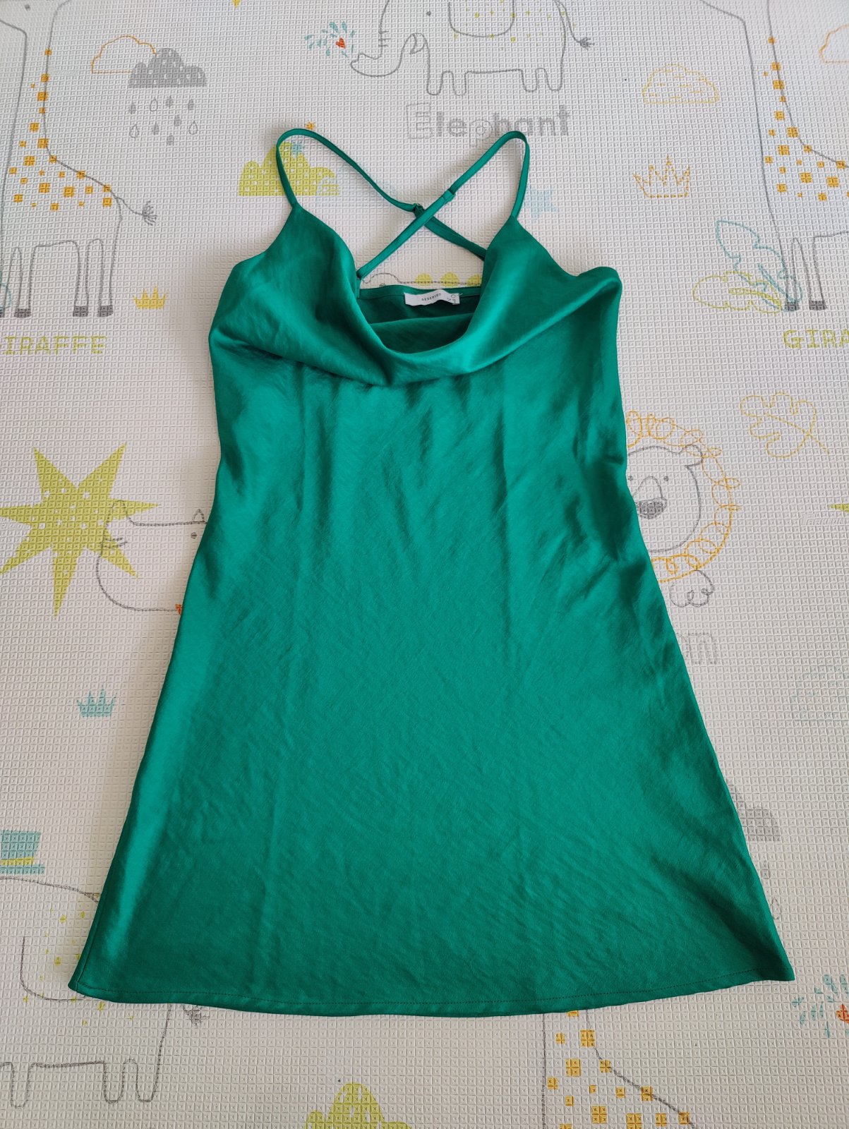 Predám ľahučké dámske mini šaty značky Reserved. Veľkosť 36, regulovateľné ramienka. Farba krásna smaragdovozelená. Materiál akoby satén. Raz oblečené.