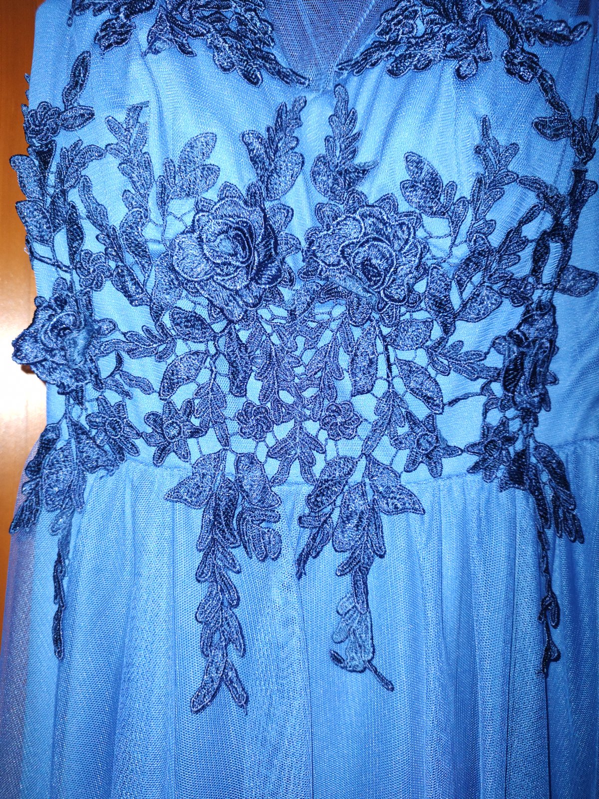 Predám raz oblečené plesové spoločenské šaty vhodné aj pre dievčatá na stužkovú, venček. Veľmi pekné, ako nové bez poškodení. Vzadu na chrbte riasenie, prispôsobia sa postave. Materiál tyl, podšité, na prsiach výstuž košíčky.