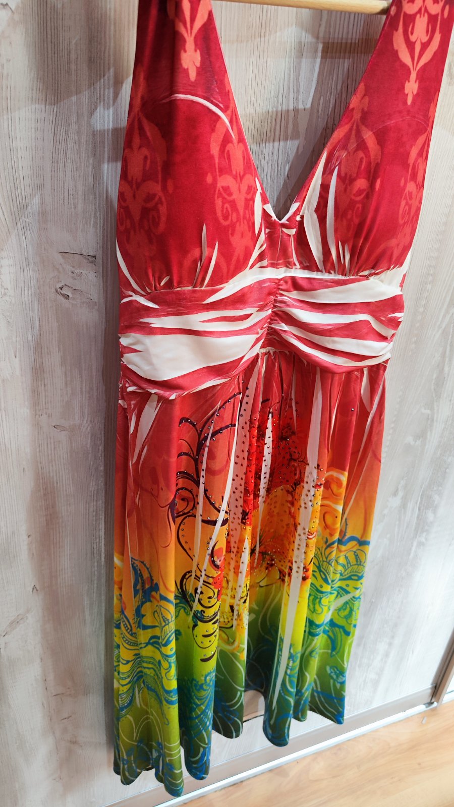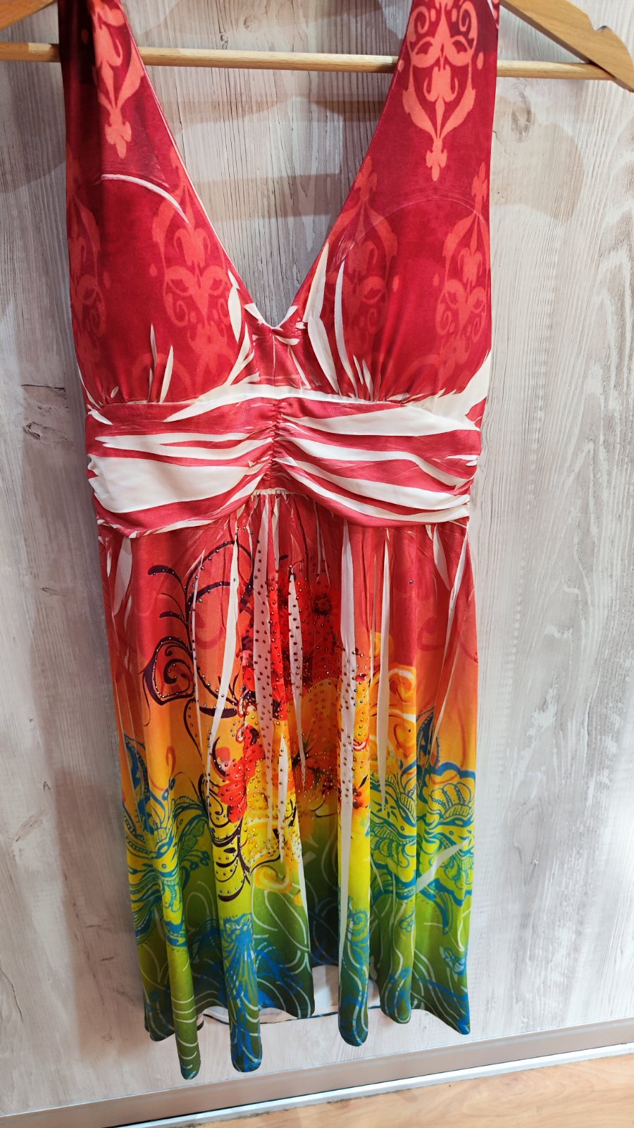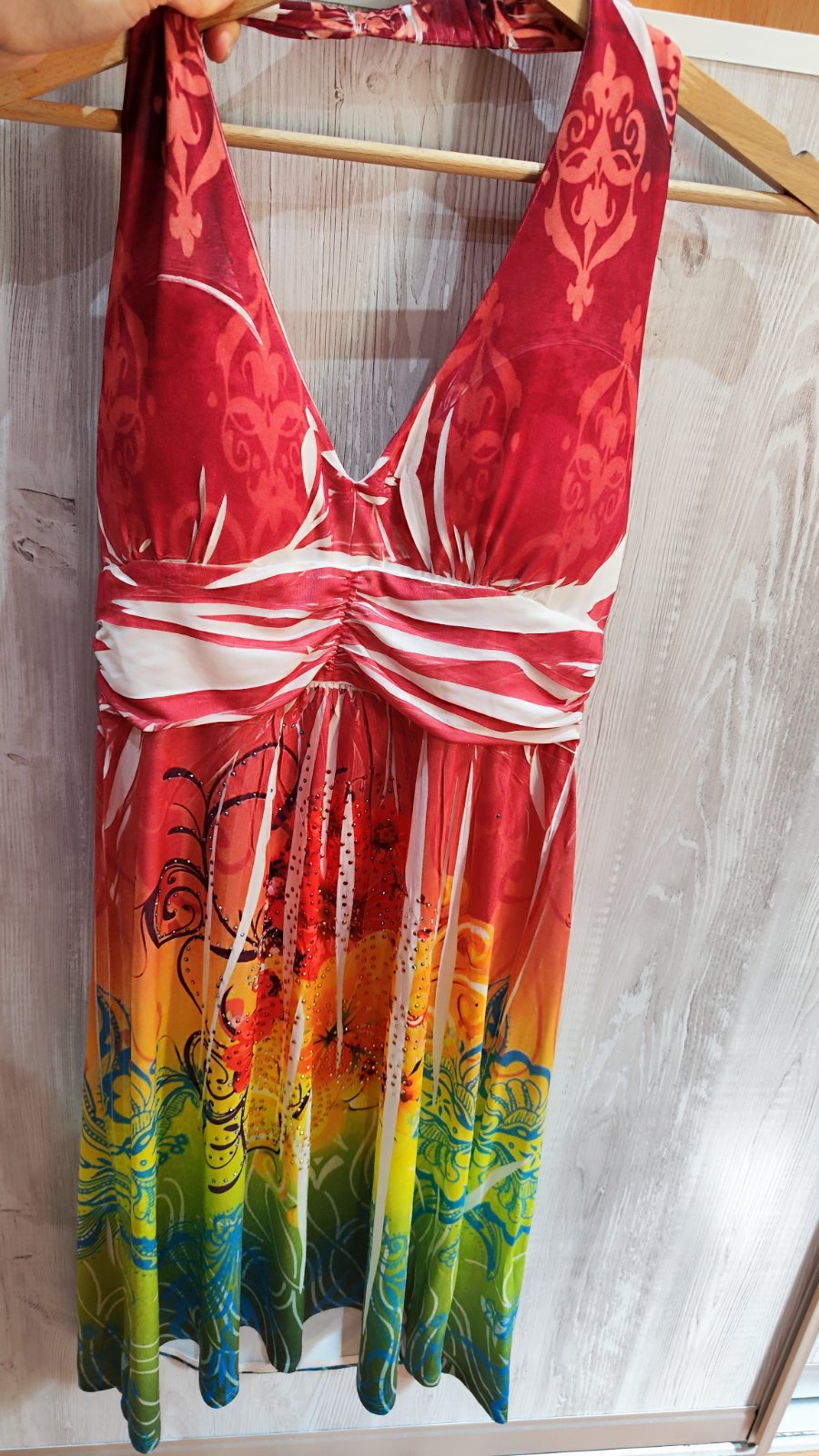 Krásne pestré šaty, veľkosť uvedená na štítku 36-38 takže také S - M. Sú elastické.