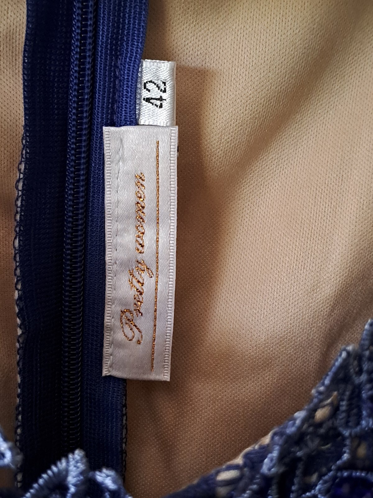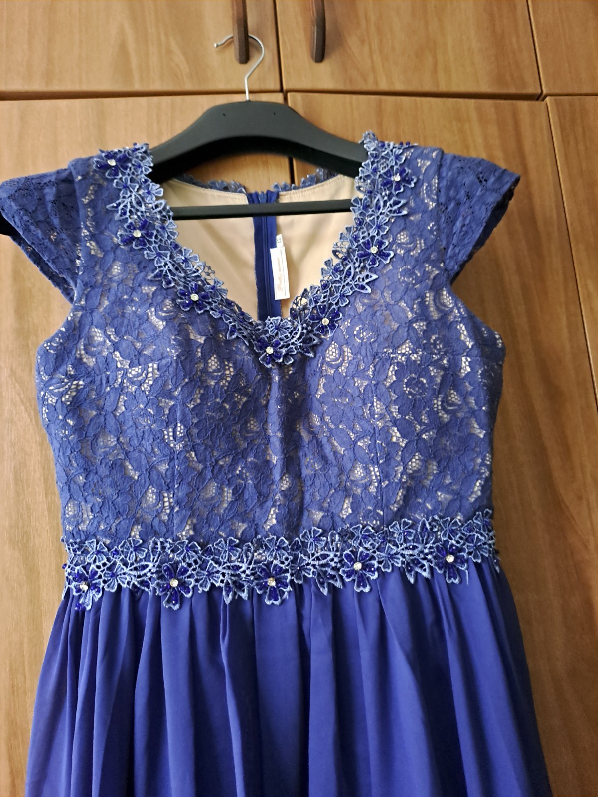 Slávnostné šaty. Veľmi zachovalé, málo nosené. Veľkosť píše 42, ale asi sú 40. Šírka prsia: 2x 46 cm. Dĺžka cca 106 cm. PC okolo 100 EUR.