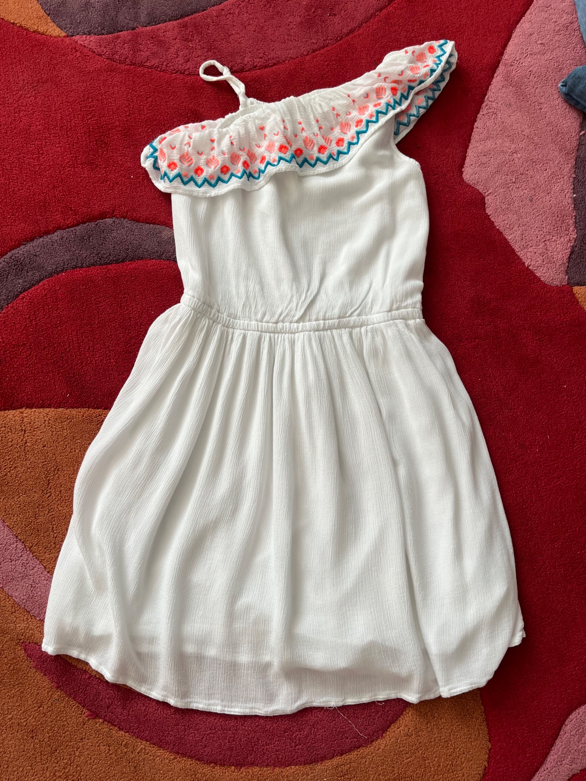 Ponúkam veľmi pohodlné,vzdušné šatky bez rukávov. Celková dlžka 107cm,širka v pase 31cm s možnosťou až do 41cm je tam všitá guma pre dievčatá veľkosť 152cm. Cena bez poštovného, možný aj osobný odber.