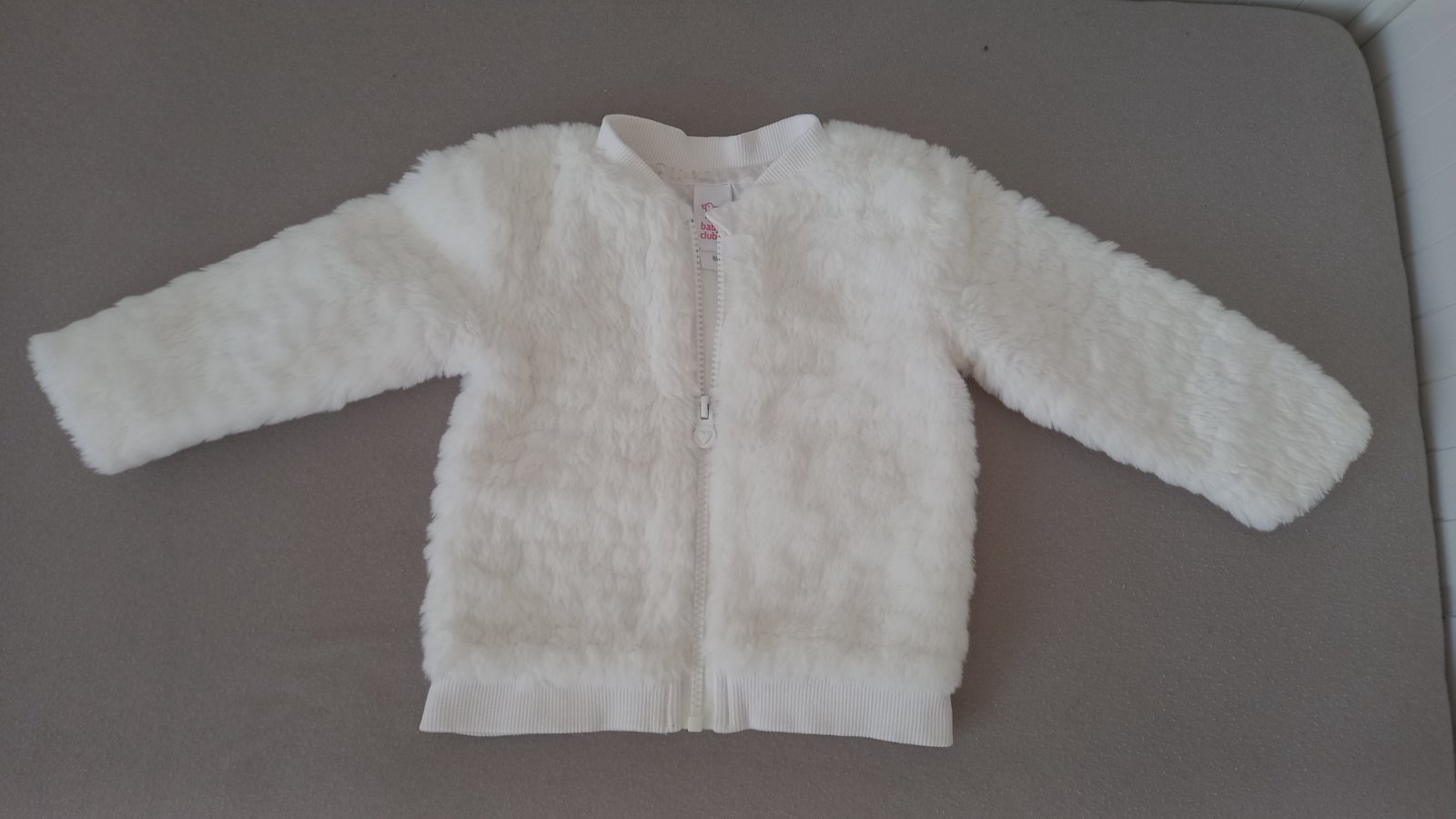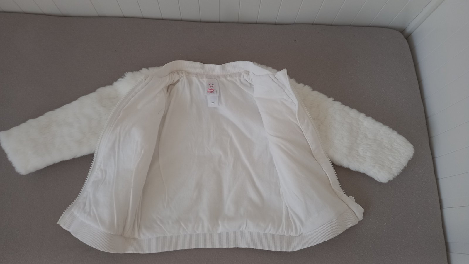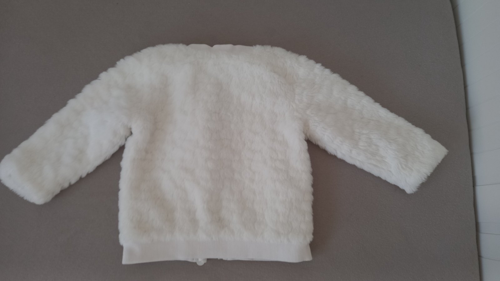 Predám dievčenský biely kabátik ale iba spolu ako komplet so šatami veľkosti /3-6mesiacov/ + body veľkosti 50.